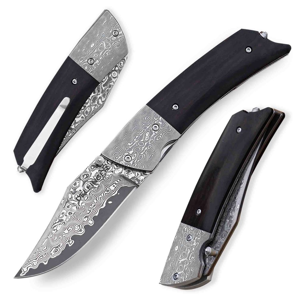 Nůž Ragnhild je spolehlivý outdoorový nástroj z oblíbené kategorie EDC. Tento praktický zavírák poskytuje stabilní výkon při široké škále aktivit v přírodě i běžných pracovních úkolech. Čepel disponuje špičkovým řezným jádrem z japonské oceli VG-10, které je chráněno 66 vrstvami nerezových damaškových ocelí. Ocel dosahuje vysoké tvrdosti až 61 HRC, čímž zaručuje mimořádnou odolnost proti opotřebení i korozi při zachování snadného broušení. Čepel je pro bleskové otevírání uložena v kuličkových ložiscích a bezpečně zajištěna pojistkou linerlock. Ergonomická rukojeť z ušlechtilého ebenového dřeva je doplněna damaškovým kováním. Praktický klip na pásek je navíc otočný, což zvyšuje komfort při nošení.