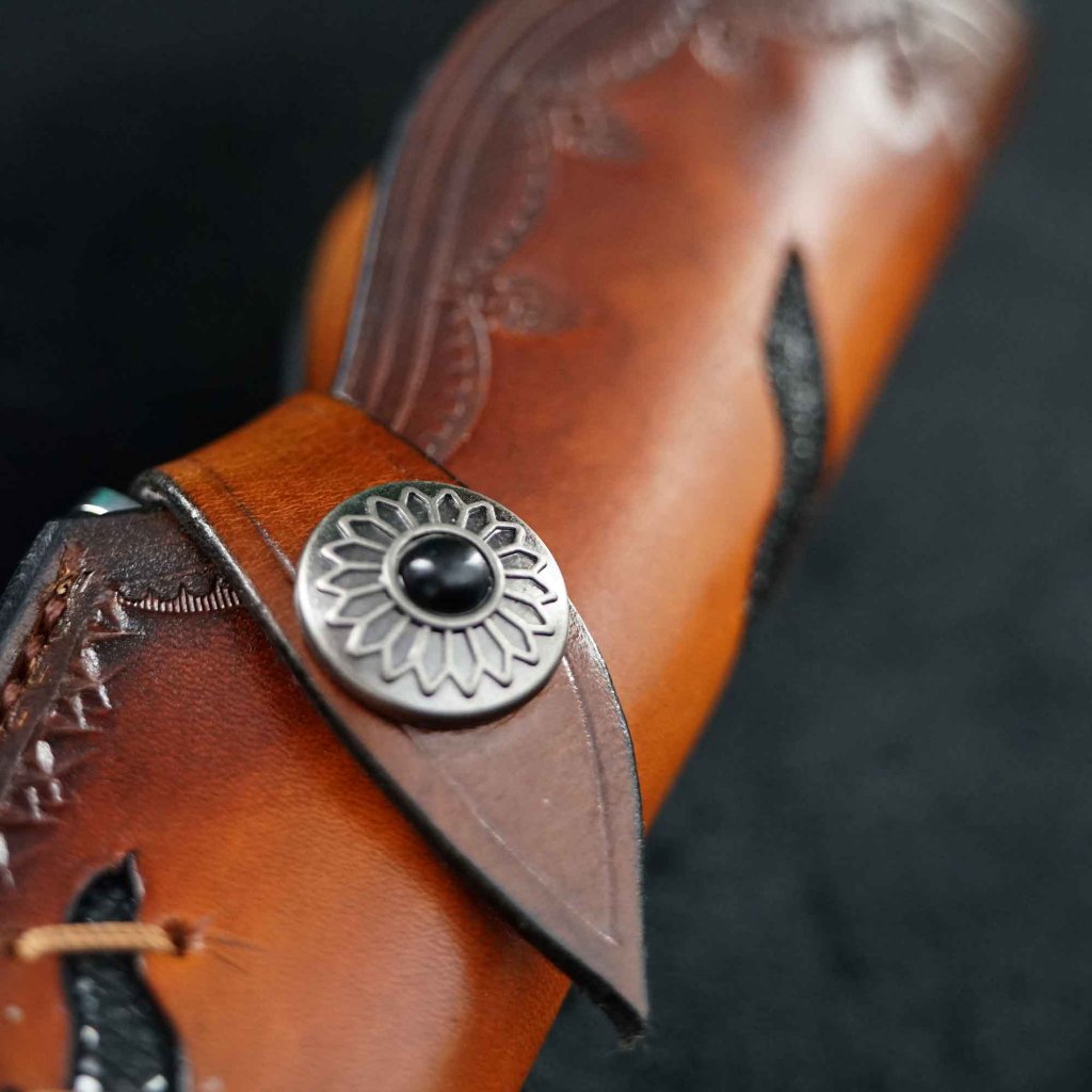 Rukojeť je ergonomicky tvarována z exotického ebenu, který je doplněn o vzácný segment z fosilie mamutí stoličky. Tato kombinace materiálů činí z nože luxusní doplněk pro každého milovníka přírody a designu. Nůž je dodáván se stylovým pouzdrem z kvalitní kůže.