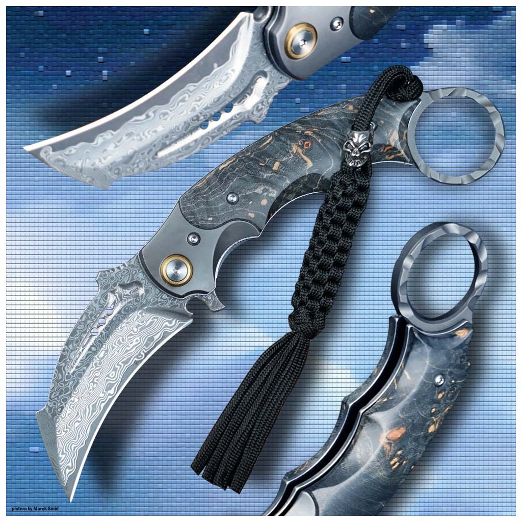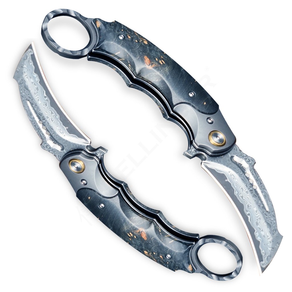 Damaškový zavírací nůž Dellinger Tueur VG-10 Maple, Karambit Style