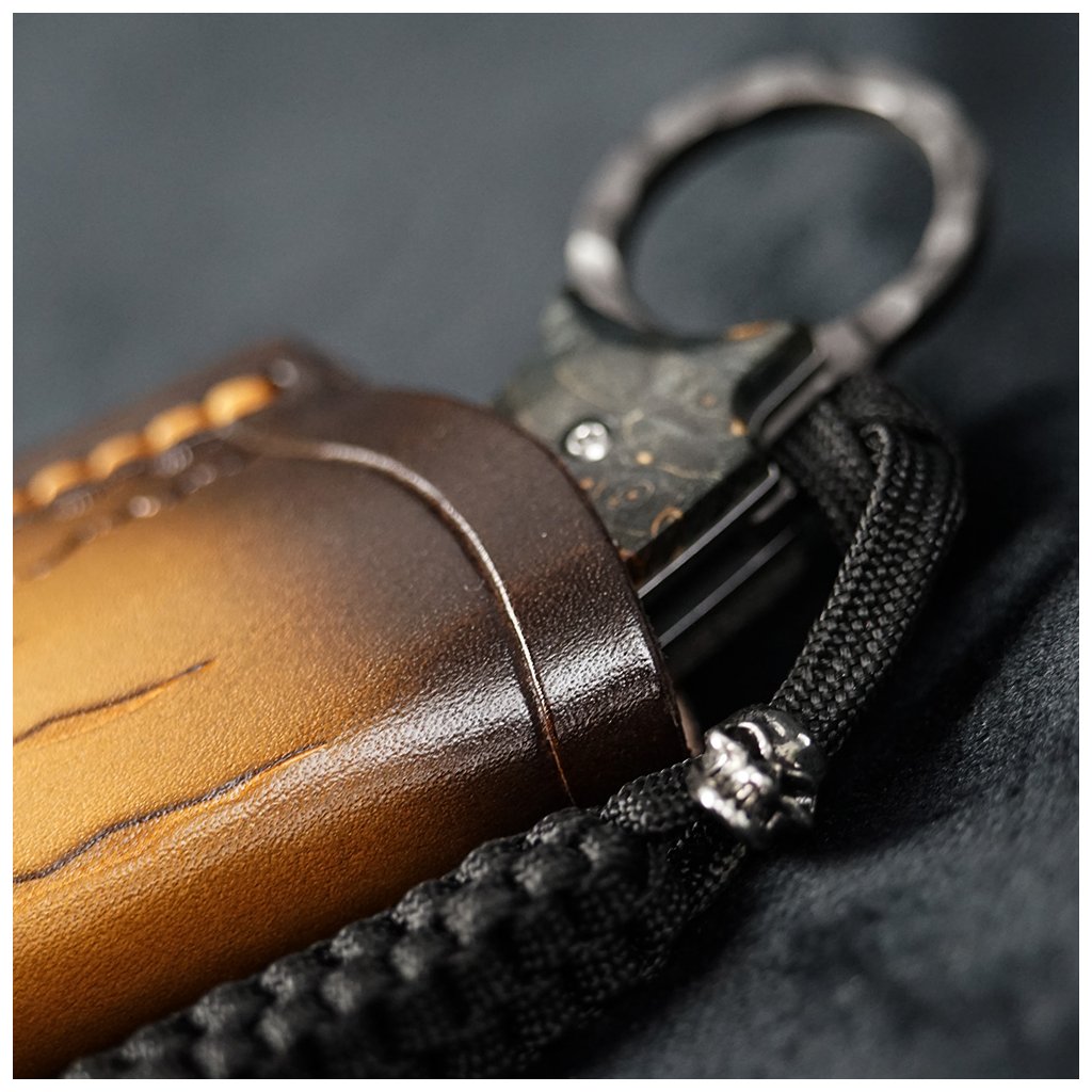 Rukojeť ze stabilizovaného dřeva javoru zajišťuje vysokou odolnost proti vnějším vlivům a velmi příjemné držení. Na konci rukojeti se nachází otvor pro paracord, který je již osazen černou šňůrkou pro snadnější vyjmutí z pouzdra či kapsy.