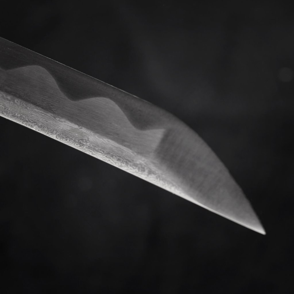 Die Spitze der Klinge ist geformt shinogi-zukuri und chu kissaki mit echten Diamond-Shaped Yokote.