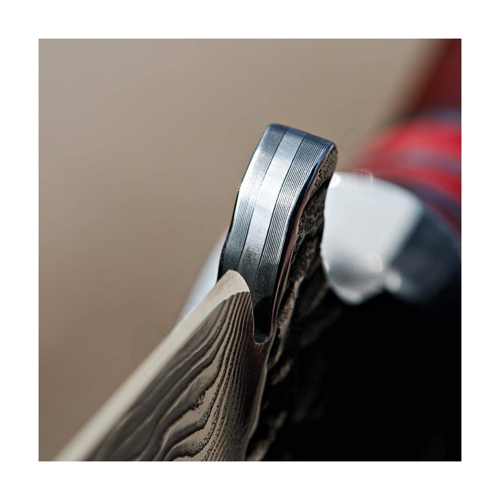 Upozornění Každý kus je vyroben z přírodních materiálů (ebenové dřevo, velbloudí kost) a ručně kované damaškové oceli. Každý vzor je originální a nenapodobitelný, proto se váš exemplář může mírně lišit od fotografie. Tato jedinečnost je důkazem poctivé ruční práce a přírodního původu materiálů. |