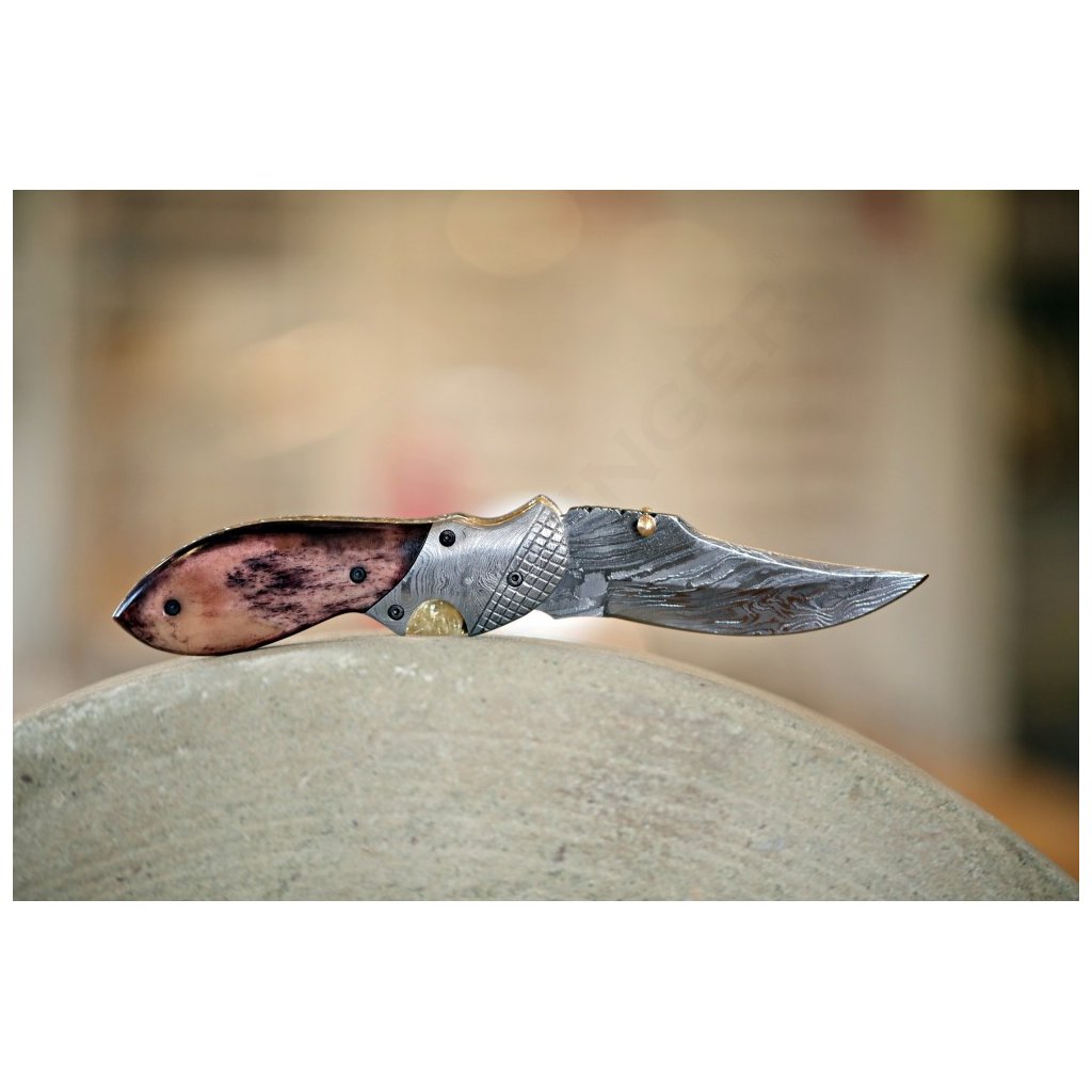 Dellinger Damascus Schnabel Folding Hunting Knife