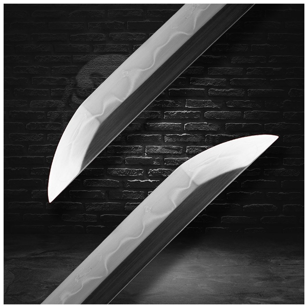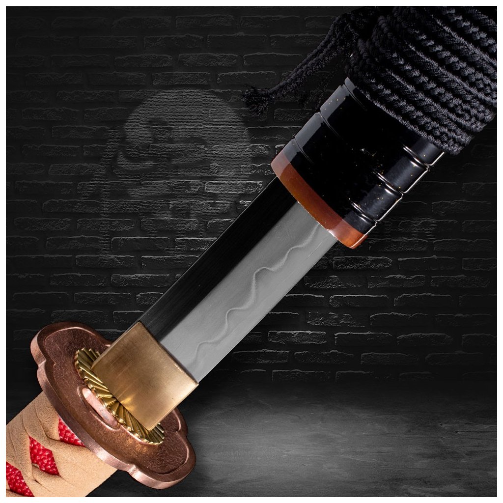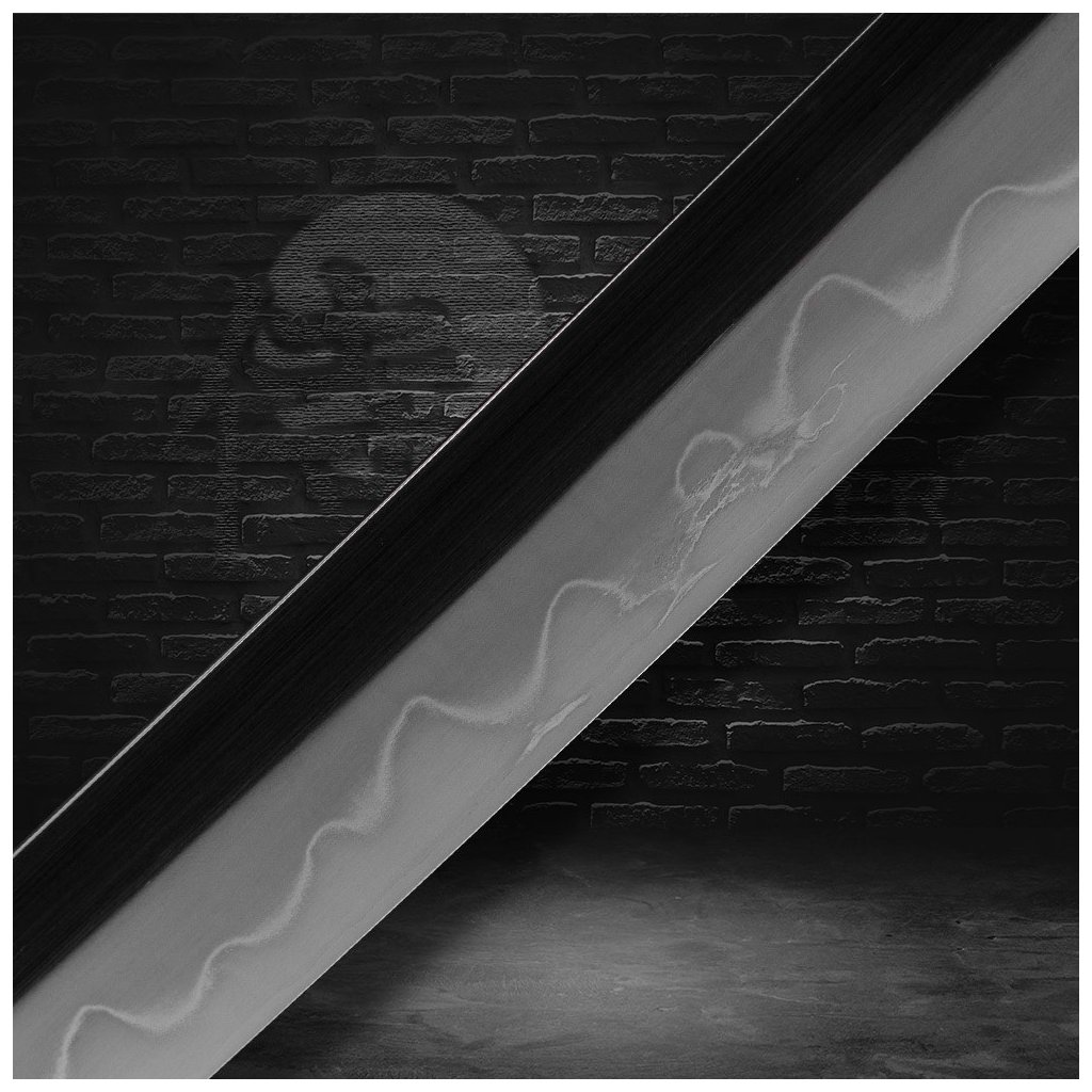 Distinctive real and unusual hamon CHOJI is created according to ancient traditional methods, based on the many years of experience of the master blacksmith who spent several days making this beautiful weapon. Everything on this sword is individually made, including the saya and habaki, and the finest components are used, including top quality saya lacquer, Japanese silk and genuine stingray leather of the highest quality. This is a high-end replica of a samurai sword that is suitable for sake trials and can be disassembled into its individual parts. This blade has been tried and tested to remove everything in its path ! The Sori (curvature of the blade) is specially designed to achieve the finest and cleanest cuts possible. All this combined with the choice of traditional Koshirae forged ensures that you get the best in terms of appearance and functionality. The T-10 carbon steel has an impressive hardness of HRC 58 - the perfect combination of this hardness is accentuated by the curvature of the Sori blade, which makes it easy to cut through tatami, straw mats, or bamboo for tameshigiri. The full tang construction of this katana greatly increases the sword's power. The blade is of the shinogi-zukuri type, this type of blade has been produced since the 10th century AD. The tip of the ko kissaki sword with a true Diamond-Shaped Yokote, which is very well defined by the hamon running the entire length through the Boshi. The Yokote is very important to the structural integrity of the sword tip. It helps absorb shock, dissipates force, and contributes to the stability and strength of the sword during the so-called follow-through. This katana (samurai sword) is suitable for practical use, the company Dellinger however, the company disclaims any liability for injuries and damages resulting from use. Keep out of reach of children ! Any handling of the samurai sword is your own responsibility. Remember, you are holding a deadly weapon!