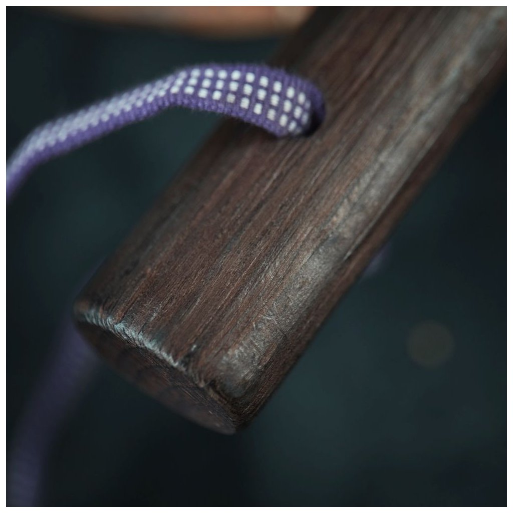 Topůrko z opáleného bílého dubu ze severního Japonska vyniká svou houževnatostí. Povrchová úprava opálením zvyšuje odolnost rukojeti, chrání ji před nečistotami a dodává nástroji unikátní charakter.