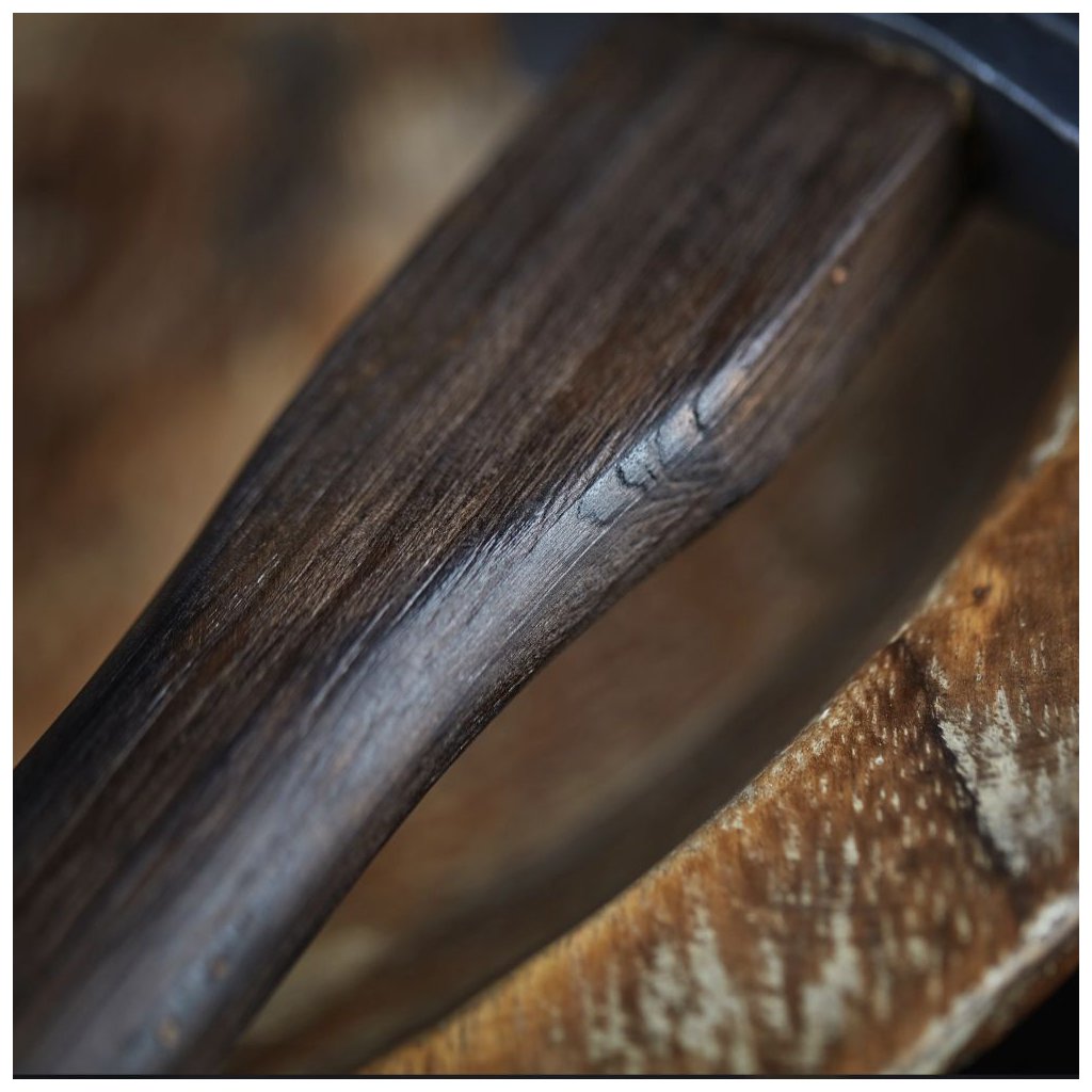 Originální ruční práce Každý kus je ručně vyráběný originál. Vzhled dřeva a kované oceli se může mírně lišit od fotografie, což potvrzuje autenticitu poctivé ruční práce mistra Mizuna. |