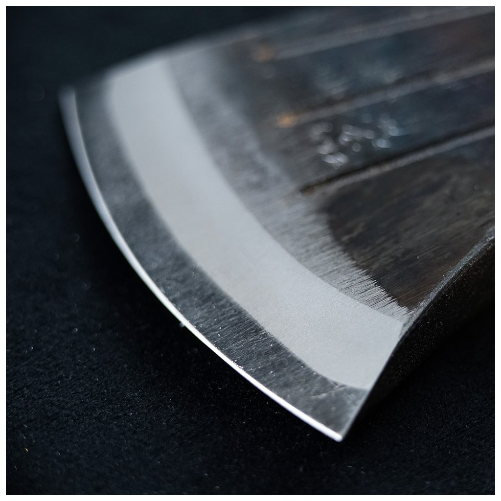 Hlava je vyrobena tradiční metodou Warikomi, kdy je do měkčí oceli vkováno tvrdé řezné jádro z uhlíkové oceli 1045. Tento "sendvičový" postup zajišťuje vysokou stabilitu a odolnost nástroje. Každý kus nese značku certifikátu tradiční výroby, zavedeného japonskou vládou. Hlava je navíc zdobena tradičními drážkami – sedm pruhů symbolizuje posvátné hory a dle legend přináší řemeslníkovi štěstí.