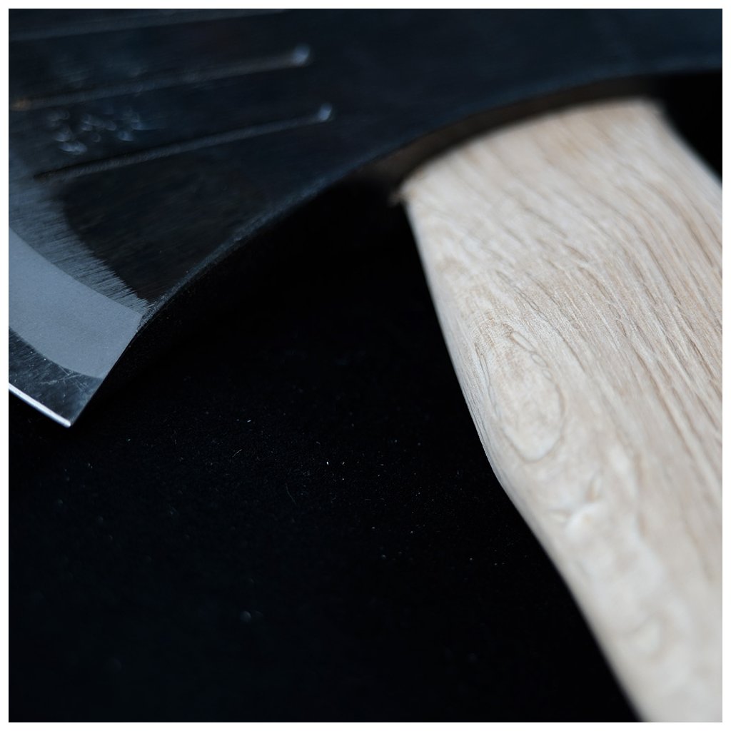 Unikátnost materiálu Každý kus je ručně kovaný originál. Vzhled dřeva a kované oceli se může mírně lišit od fotografie, což je důkazem poctivé ruční práce mistra Mizuna. |