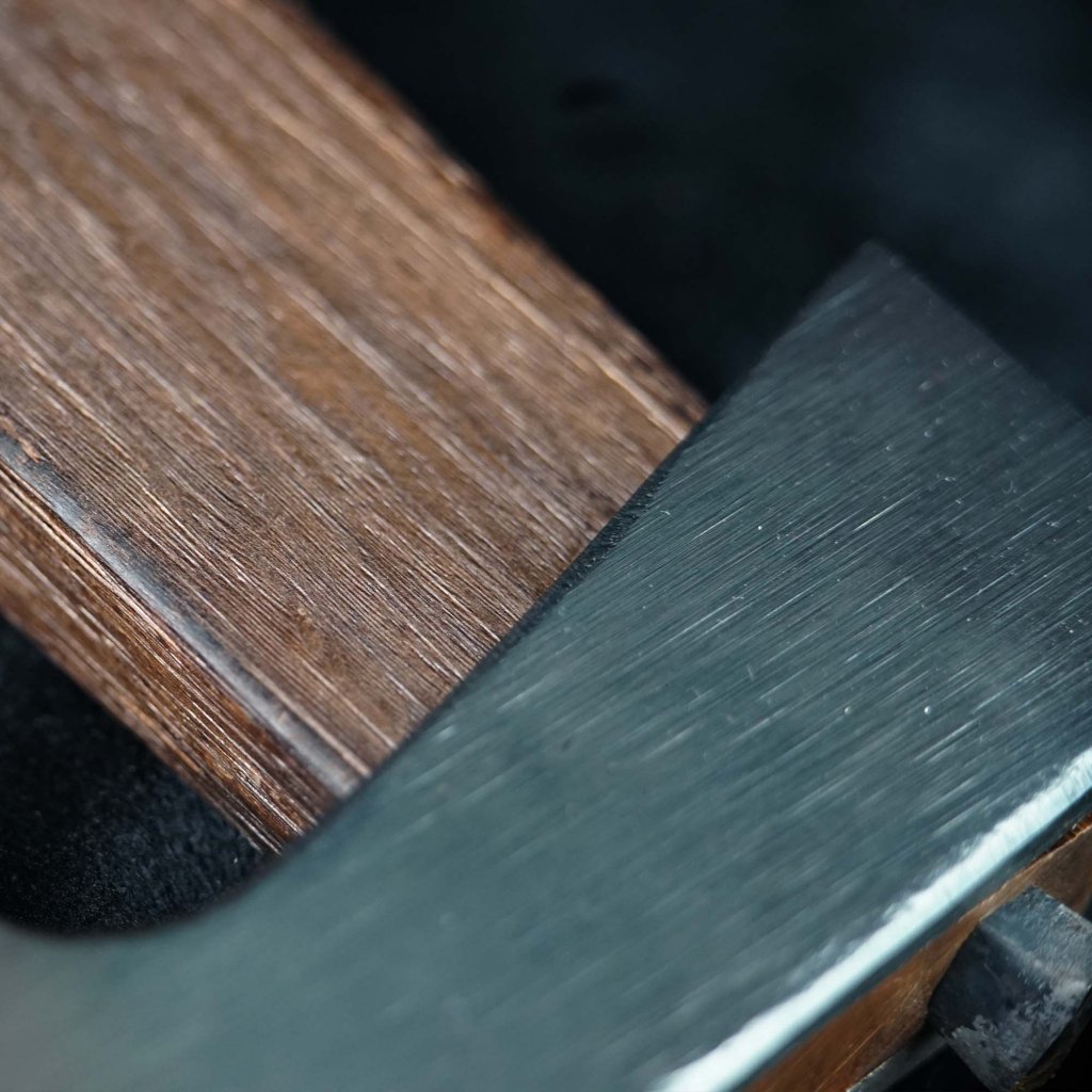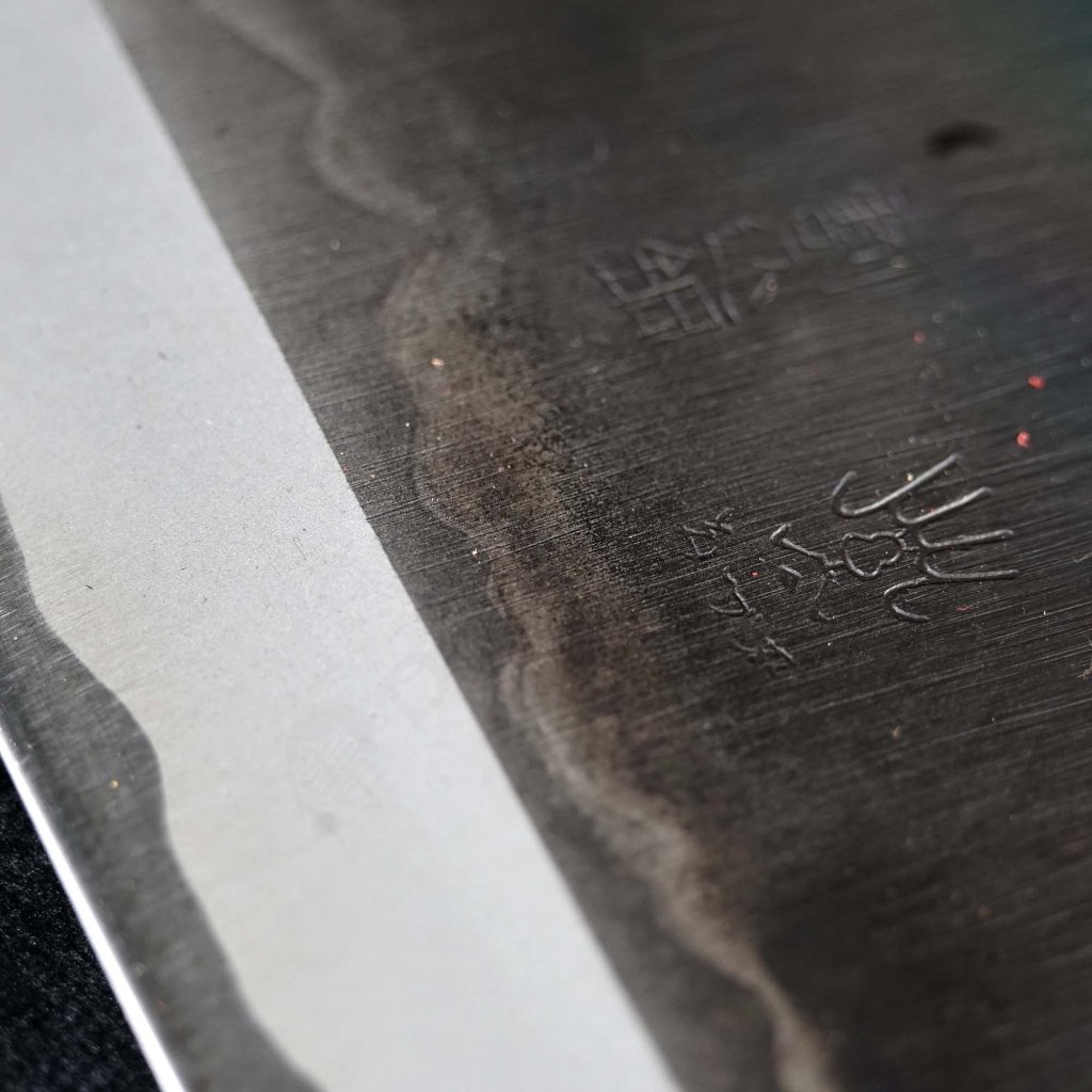 Hlava je vyrobena tradiční metodou Warikomi, kdy je do těla z měkčí oceli vkováno tvrdé řezné jádro z uhlíkové oceli 1045. Tento "sendvičový" postup zajišťuje vysokou stabilitu ostří a odolnost celého nástroje. Každý kus nese značku certifikátu tradiční výroby, zavedeného japonskou vládou pro zachování historických technik a speciálních místních řemesel.