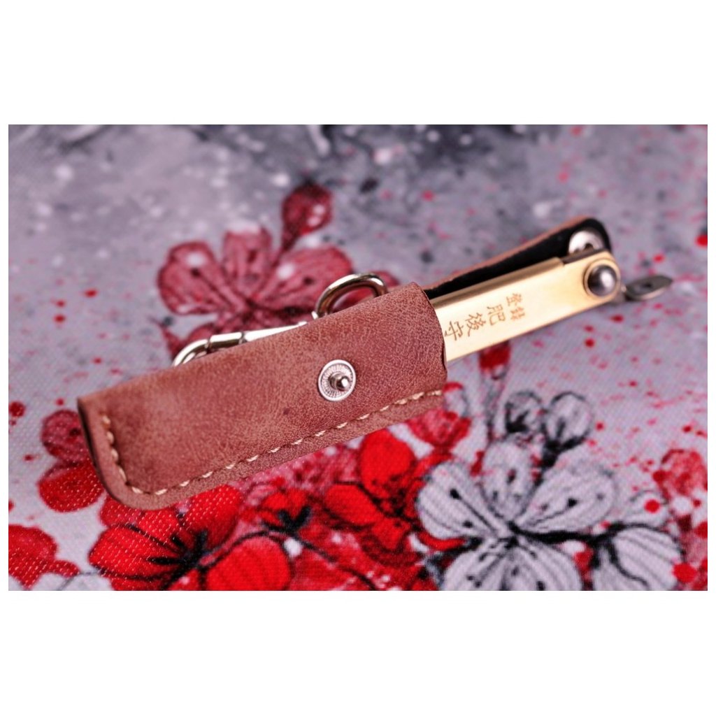 Japonský nůž Higonokami mini v hnědém pouzdře