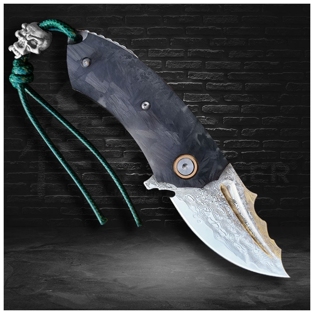 Kompaktní damaškový EDC nůž Dellinger Marihone, Carbon & VG-10