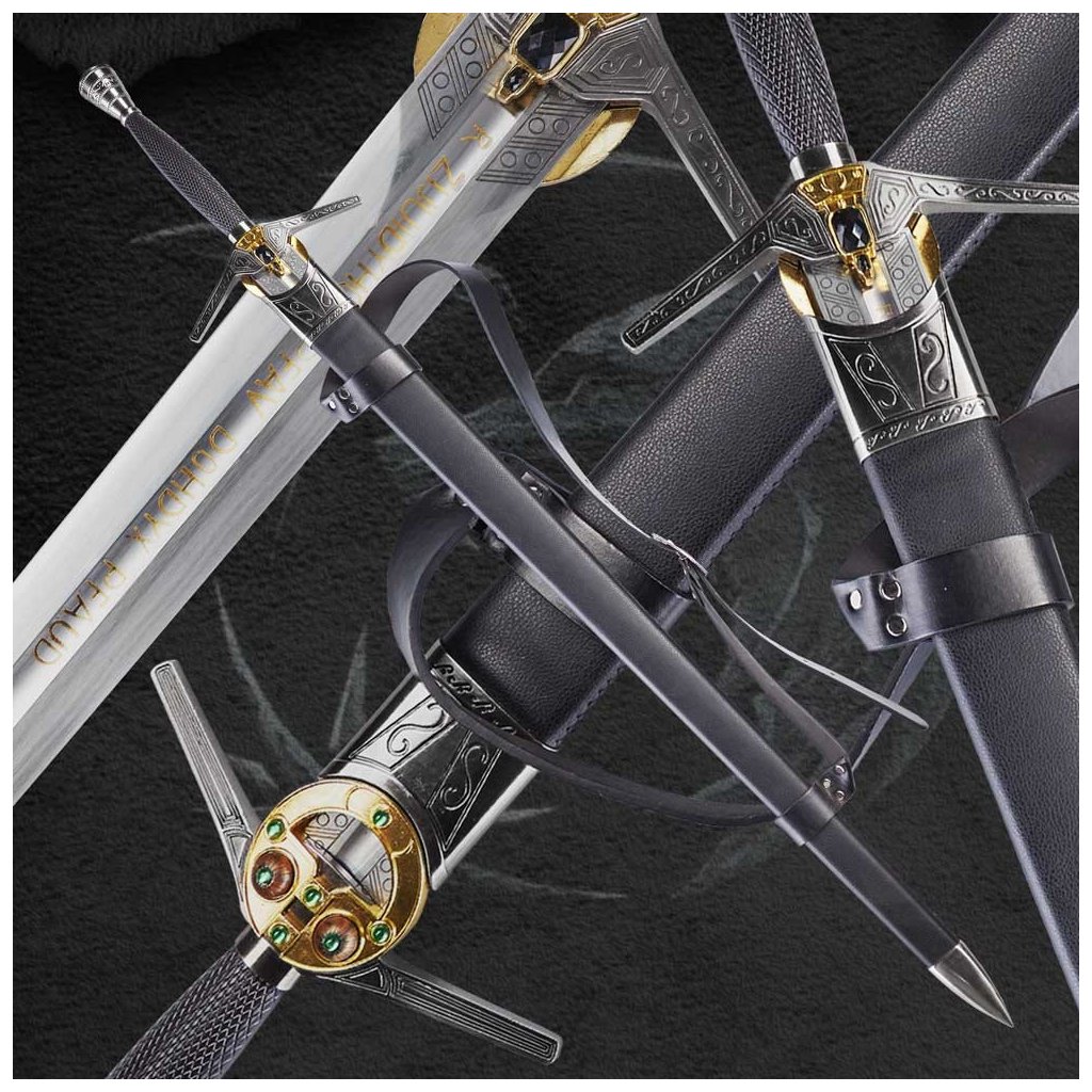 Tento kvalitně zpracovaný meč je věrnou replikou ikonické zbraně Geralta z Rivie ze seriálového zpracování Zaklínače na Netflixu. Čepel o délce 80 cm je vyrobena z uhlíkové oceli AISI 1095 a je vybavená charakteristickým krevním žlabem, ve kterém je vyryt dekorativní nápis inspirovaný prastarou Elder Speech ze zaklínačského světa.