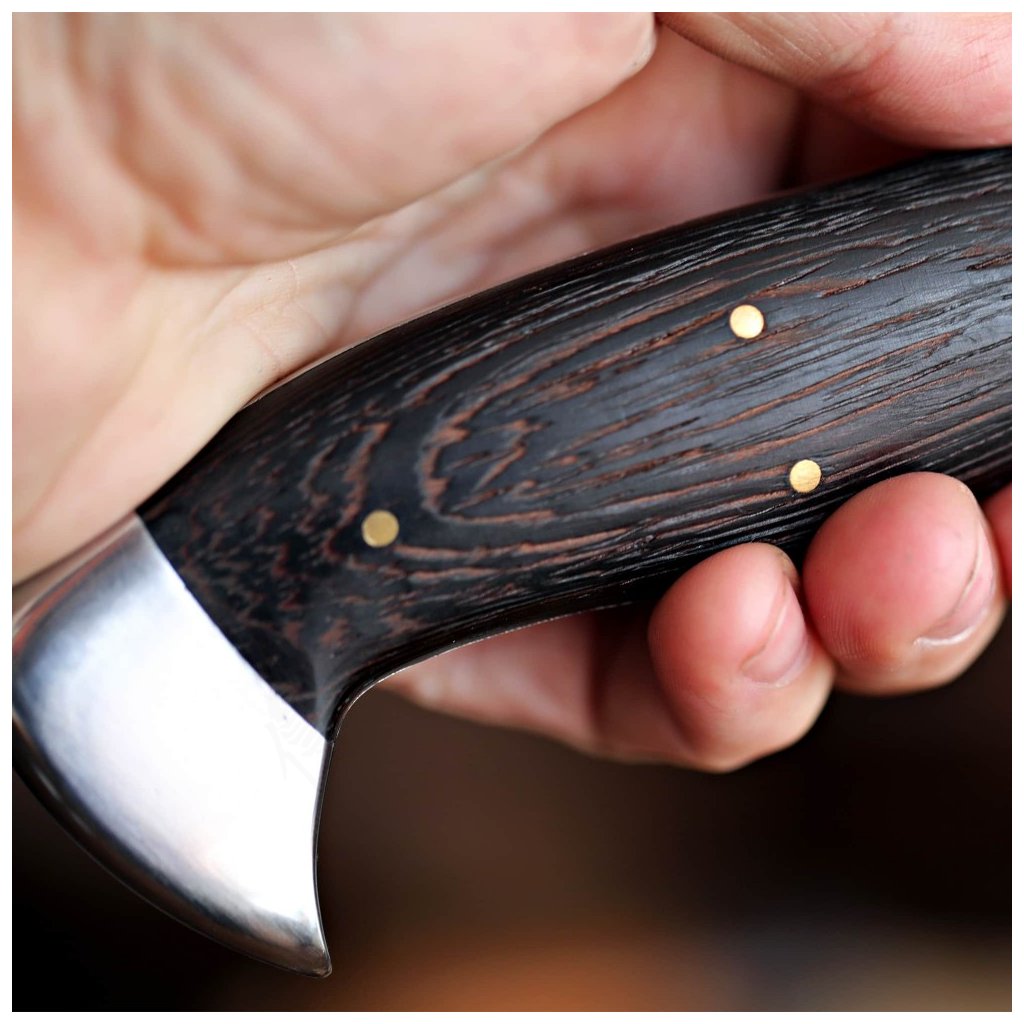 Upozornění Dřevo Wenge i kovaná ocel jsou přírodní materiály. Každý kus je unikátní svou kresbou a povrchovou strukturou, což garantuje originalitu vašeho nástroje. |