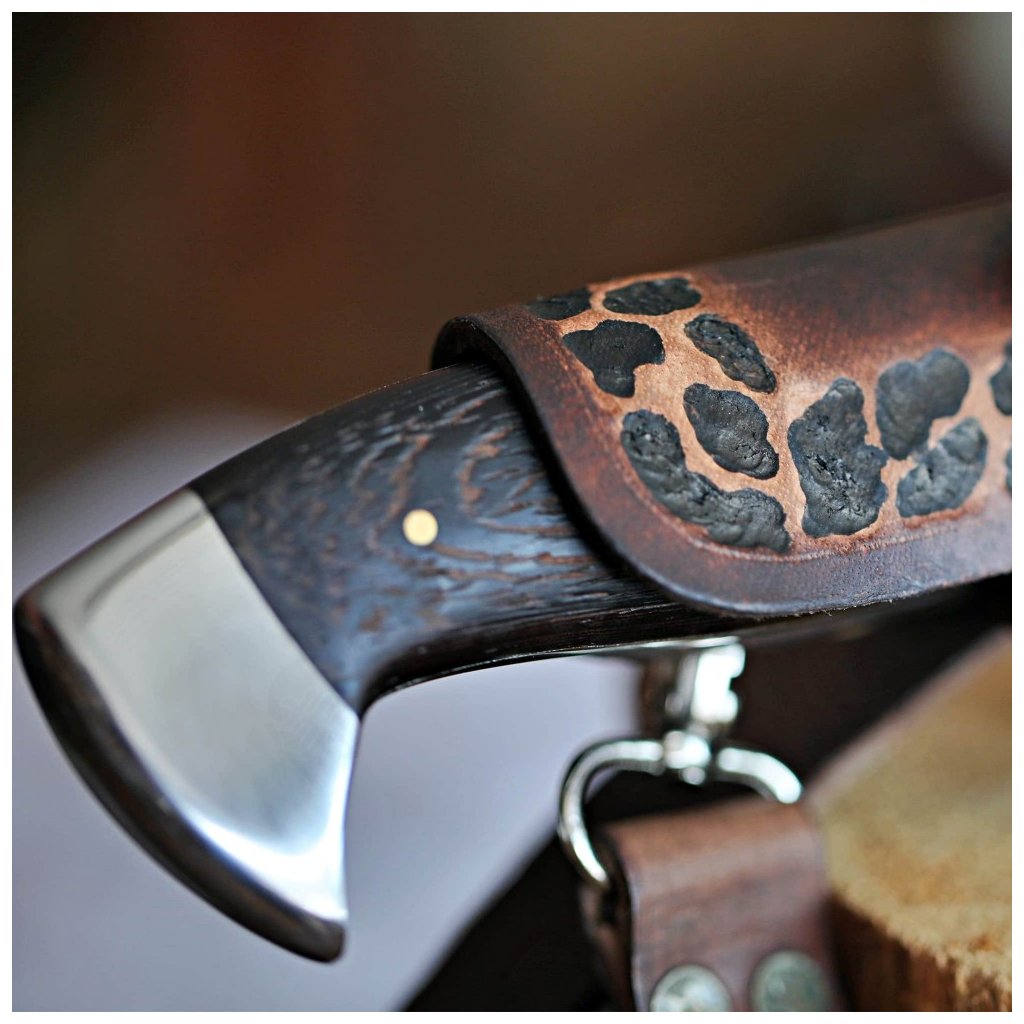 Exkluzivní mačeta Dellinger Hacke Chopper D2 s rukojetí ze vzácného dřeva Wenge je ručně kovaná z vysoce kvalitní oceli D2. Čepel mačety disponuje matnou povrchovou úpravou black stonewashed, která neodráží světlo a skvěle maskuje drobné škrábance. Tento masivní nástroj najde své uplatnění při outdoorovém vaření, ale především při náročné práci venku, jako je prosekávání vegetace, příprava dřeva na oheň nebo stavba přístřešku při bushcraftu. Dlouhá a široká čepel umožňuje provádět silné řezy s maximální energií v nápřahu.