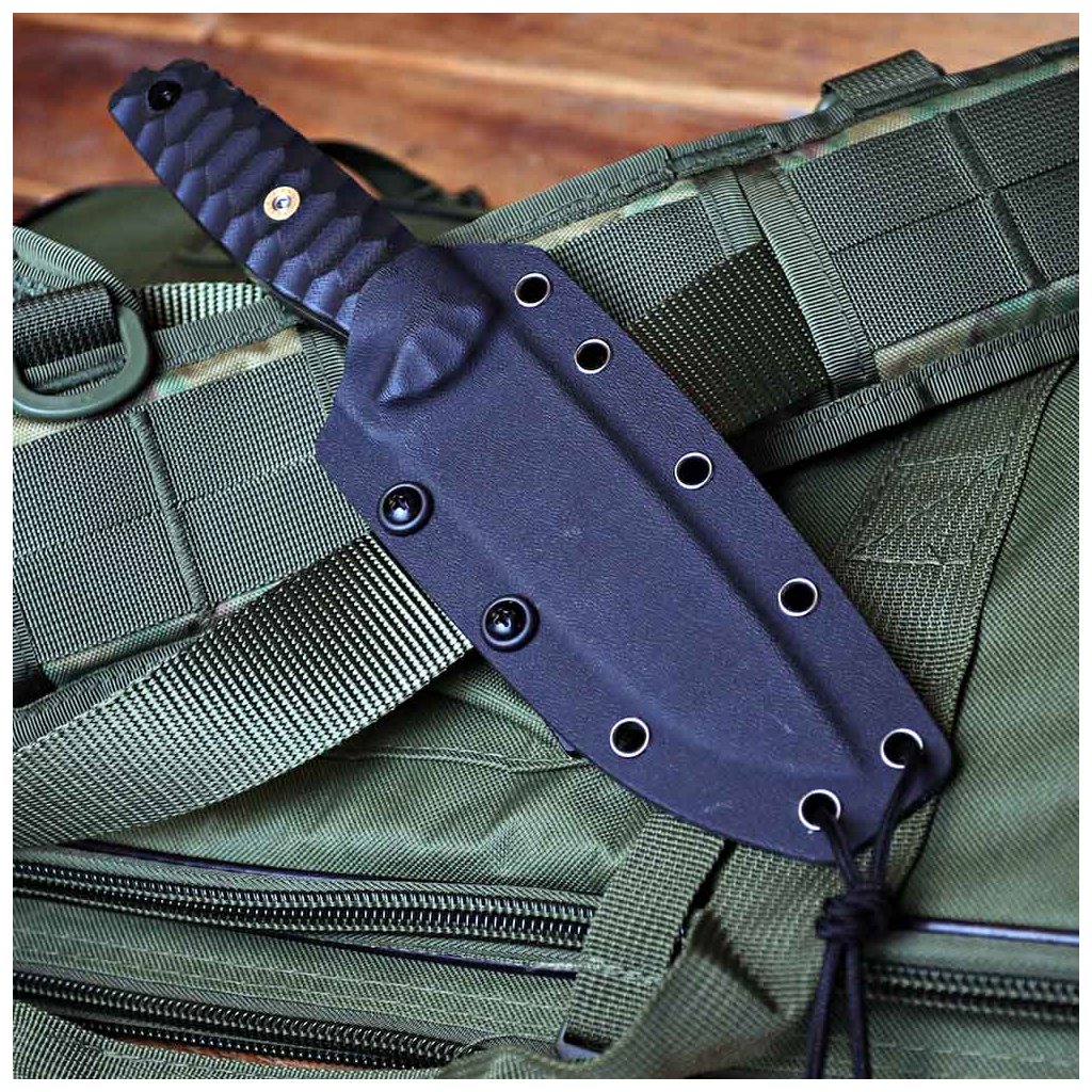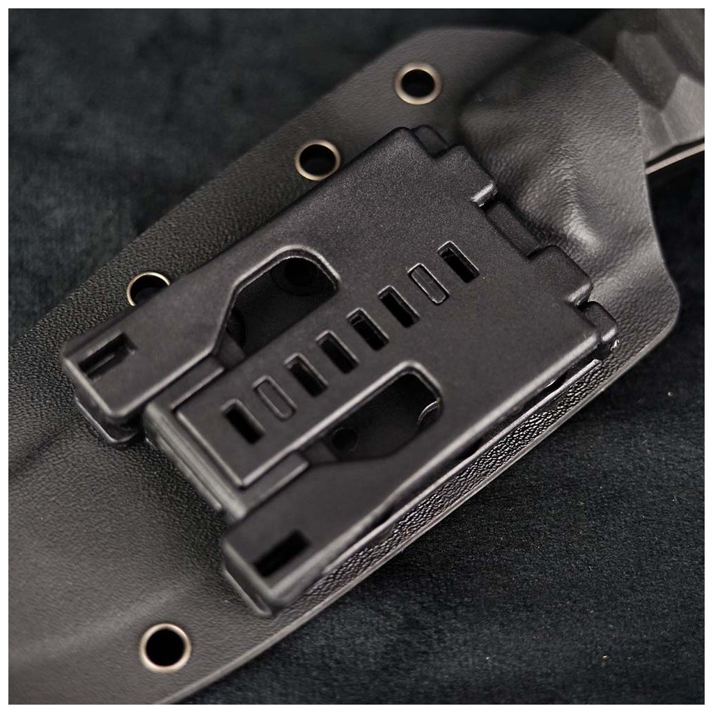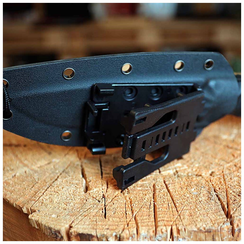 Lehké a mechanicky odolné kydexové pouzdro zajišťuje bezpečné zajištění nástroje. Díky variabilním úchytům jej lze snadno připevnit na opasek, batoh nebo taktickou vazbu MOLLE, což umožňuje bleskové tasení v případě potřeby.