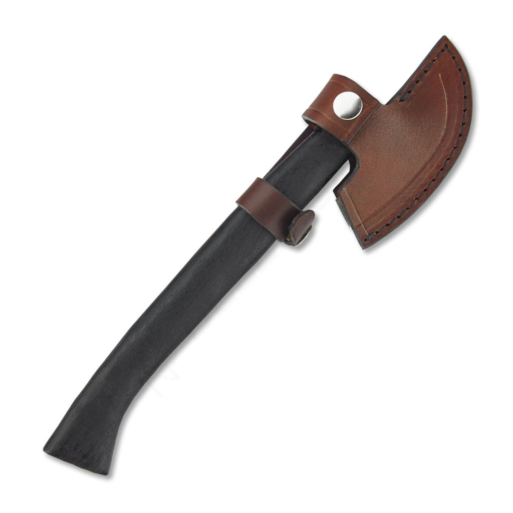 Kresba vytvořená na povrchu hlavy je jedinečná a vyniká hloubkou vrstev. Damašková uhlíková ocel není nerezová, proto vyžaduje pravidelnou péči – po použití ji doporučujeme umýt, osušit a ošetřit olejem, aby se minimalizovalo riziko oxidace. Tvrdost se pohybuje v rozmezí 55-60 HRC. Součástí balení je kožené pouzdro, které umožňuje bezpečné přenášení sekerky na váš příští outdoor výlet nebo posezení u ohně.