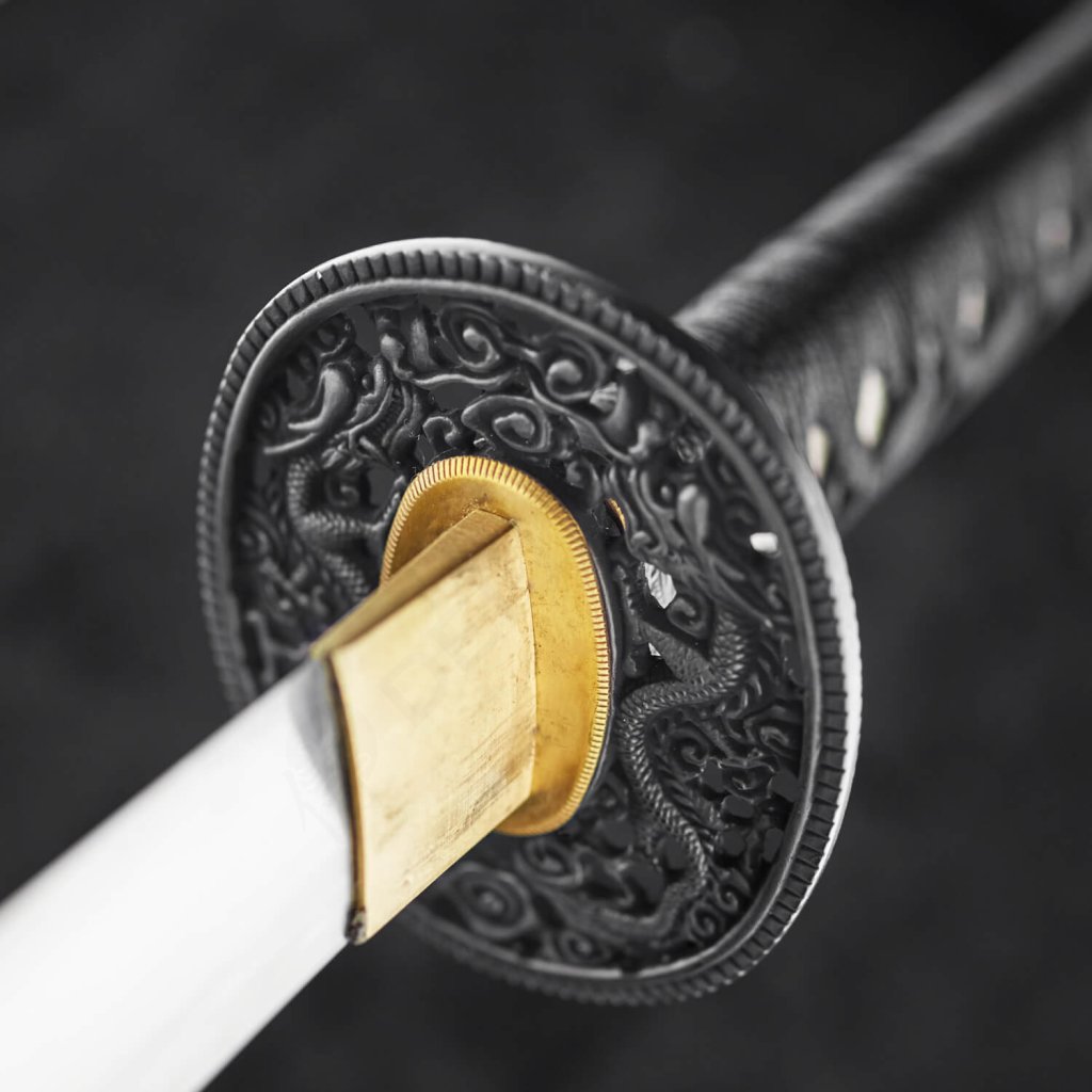 | Saya (pochva) | Tvrdé dřevo, černý lesk, buvolí roh (koiguchi, kurigata, kojiri) |