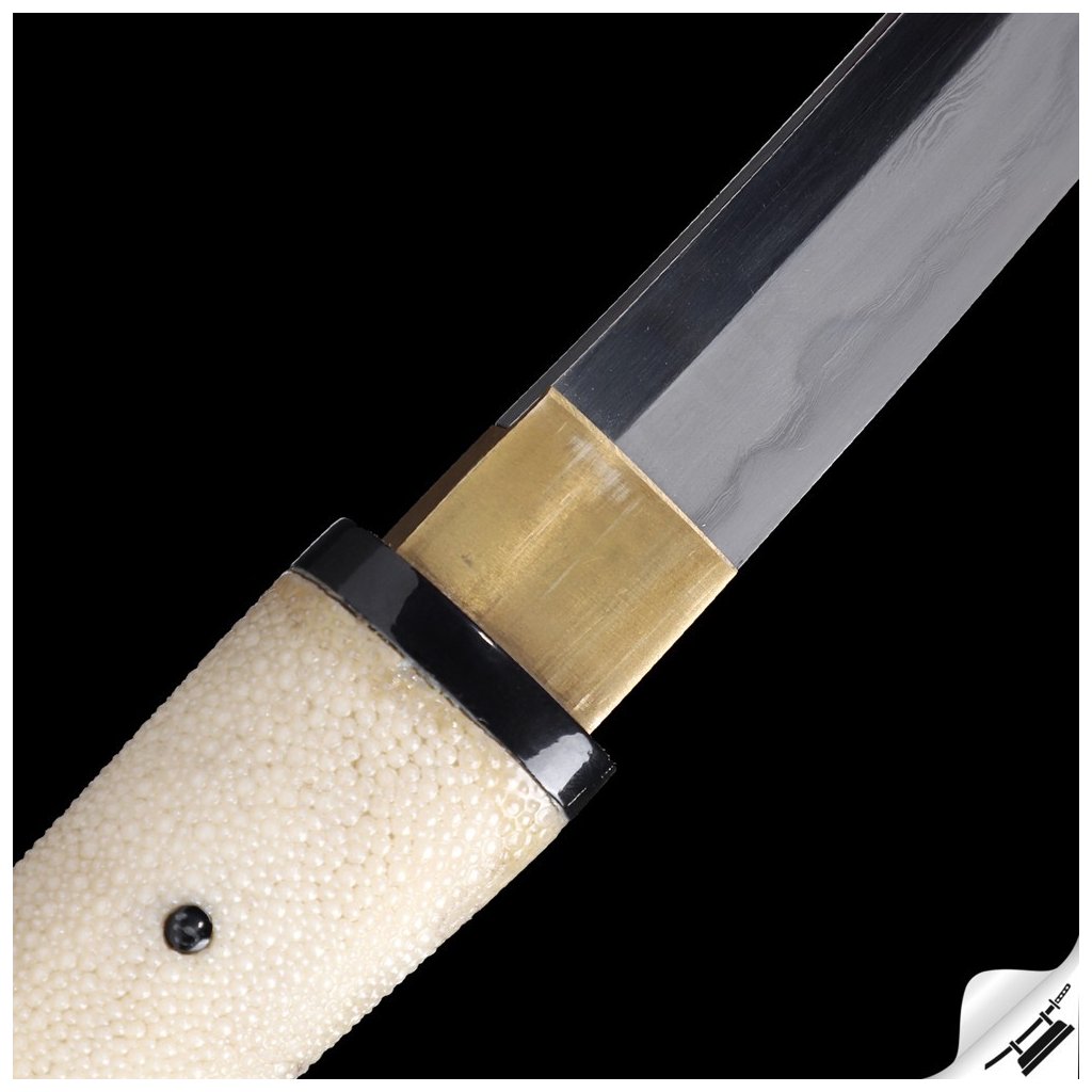 Kvalitní zpracování této repliky tanto Jūken shira saya ji předurčuje k nácviku tradičních technik nebo jako špičkový sběratelský kus pro milovníky japonské historie. Čepel je vyrobená ze skládané oceli AISI 1075, stupeň tvrdosti 59-60 HRC. Čepel zdobí skutečný hamon Choji. Ocel byla přeložena 11krát, čímž vzniklo 2048 vrstev pro optimální houževnatost a tvrdost. Viditelná struktura zrna na povrchu je výsledkem precizního ručního kování. Výroba čepele prochází 14 procesy až po finální ruční leštění kamenem hazuya, které odhaluje detailní texturu oceli. Rukojeť (tsuka) je vyrobena z tvrdého dřeva, potažena pravou broušenou rejnočí kůží a zajištěna kolíkem mekugi. Kashira-Gane a Fuchi jsou z leštěného bůvolího rohu. Červená lesklá lakovaná saya z tvrdého dřeva je doplněna o Koiguchi, Kurigata a Kojiri z bůvolího rohu. Firma Dellinger se zříká jakékoliv odpovědnosti za zranění a poškození vzniklá při neodborném zacházení. Tento předmět ukládejte mimo dosah dětí! Jakákoliv manipulace s touto replikou je na vaši vlastní odpovědnost.
