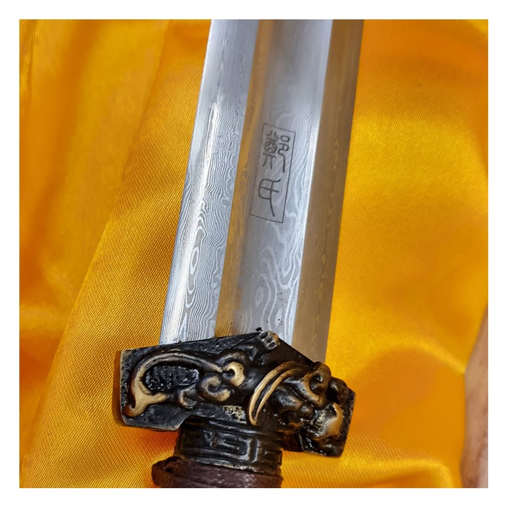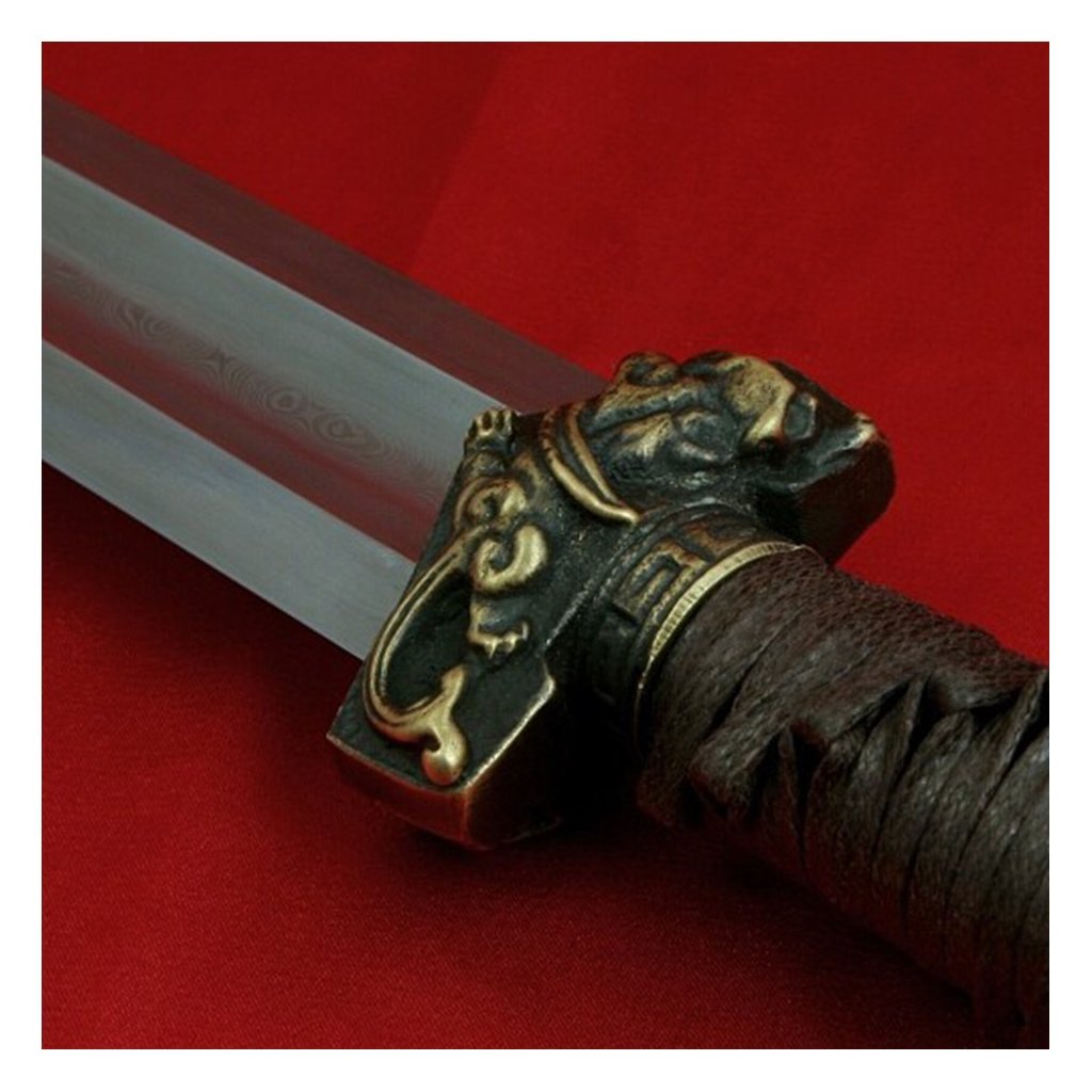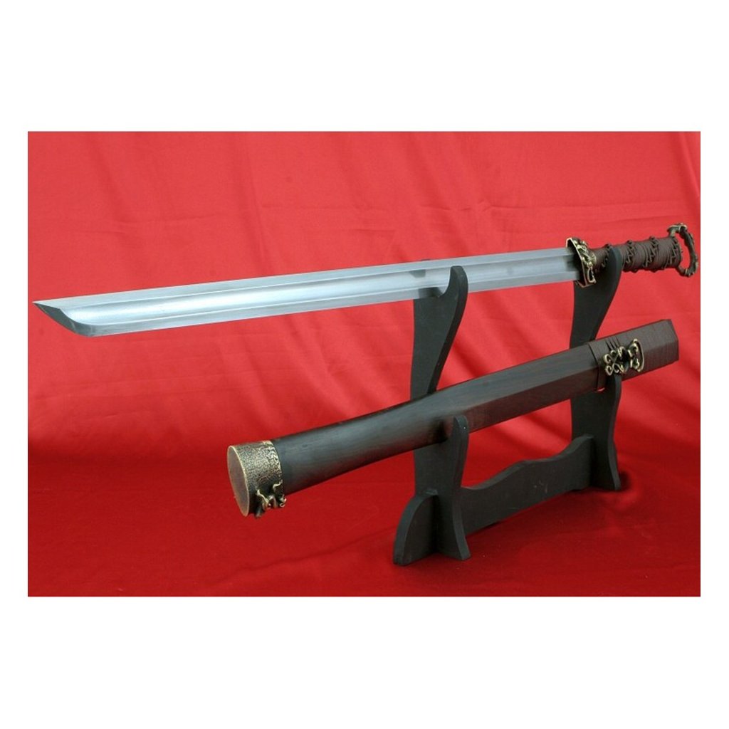 Replika tradiční čínské šavle Han Dao z překládané oceli, s dřevěnou pochvou