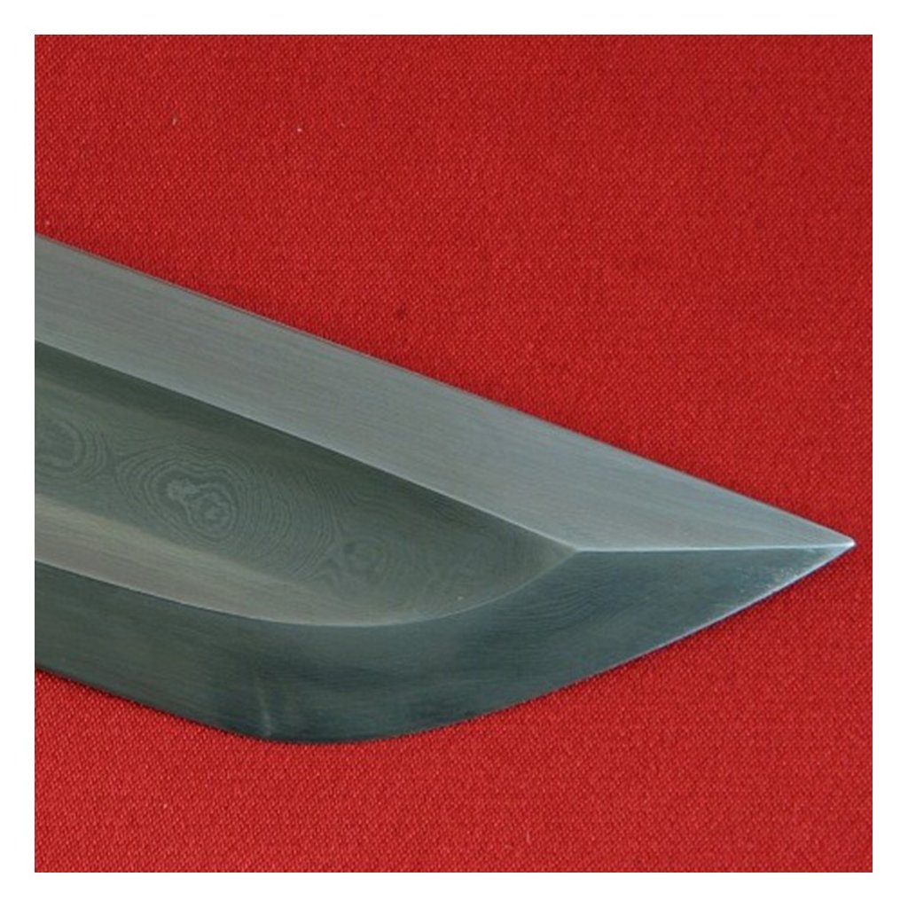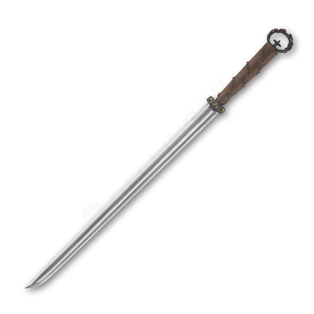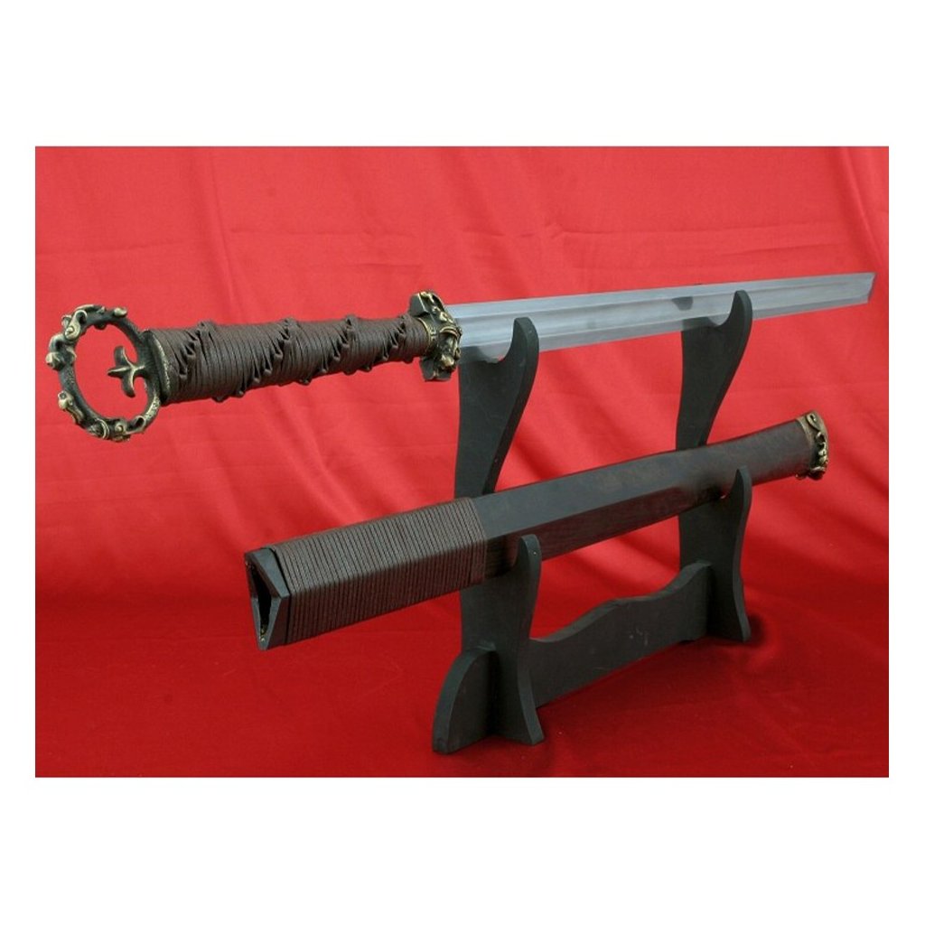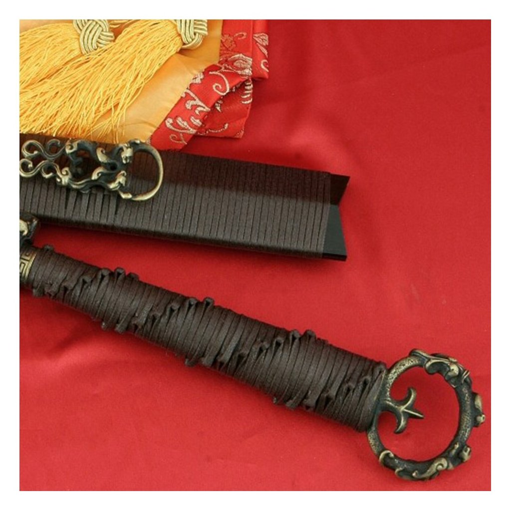 Objevte kouzlo dálnovýchodní historie s autentickou replikou šavle Han Dao. Tento model je vyroben z vysoce kvalitní překládané oceli AISI 1075, která dává čepeli charakteristickou texturu a vysokou odolnost. Design věrně následuje historické předlohy, včetně precizně zpracovaného odlehčovacího žlábku a dekorativní kovové záštity.