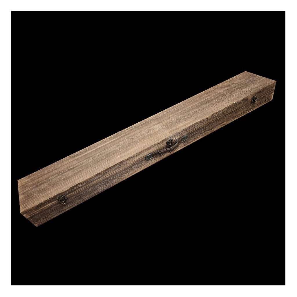 Rukojeť z tvrdého dřeva je opatřena protiskluzovým koženým opletem pro jistý úchop při manipulaci nebo nácviku sestav. Celkový estetický dojem doplňuje dřevěné pouzdro s uměleckými kovovými detaily (motiv opice) a elegantní dárková krabice s polstrováním. Součástí balení je také profesionální sada pro péči o ocel, která zajistí dlouhou životnost vašeho sběratelského kusu.