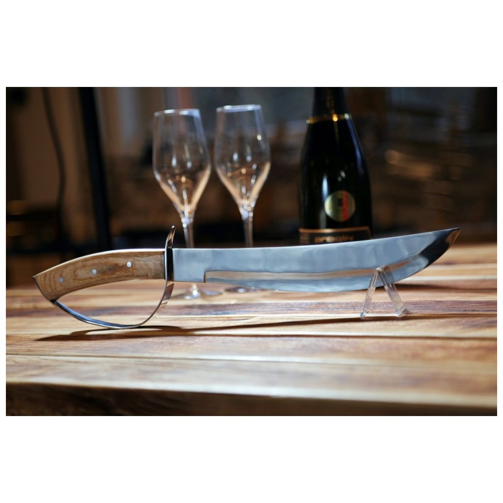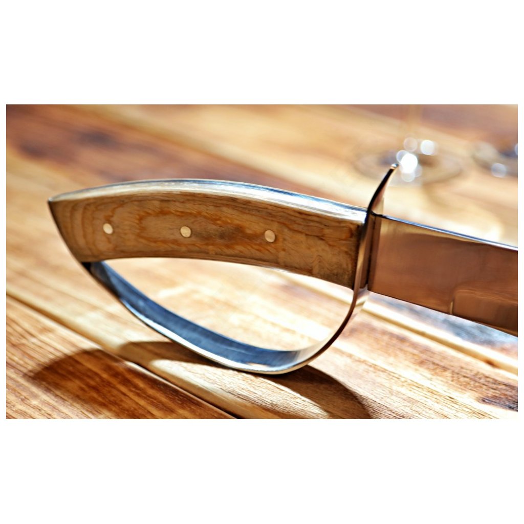 Tento způsob otevírání lahví, známý jako sabráž (sabrage), proslavil Napoleon Bonaparte. Pro správný výsledek musí být sekt vychlazený na 3–5 °C. Po odstranění košíčku se šavlí sekne podél švu lahve směrem k nákružku na hrdle. Síla úderu tupé čepele hrdlo čistě odlomí i se špuntem. Ideální doplněk pro svatby, oslavy a slavnostní příležitosti.