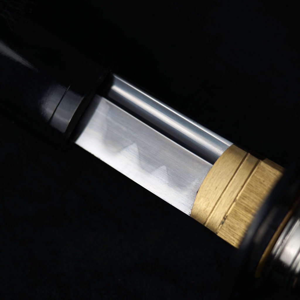 Hrot čepele Chu Kissaki s výrazným Diamond-Shaped Yokote doplňuje reálný Choji Hamon, vytvořený tradičními kovářskými metodami. Přítomnost žlábku Bo-Hi umožňuje při správném švihu slyšet typický zvukový efekt (tachi kaze), což je klíčové pro verifikaci správné techniky pohybu.