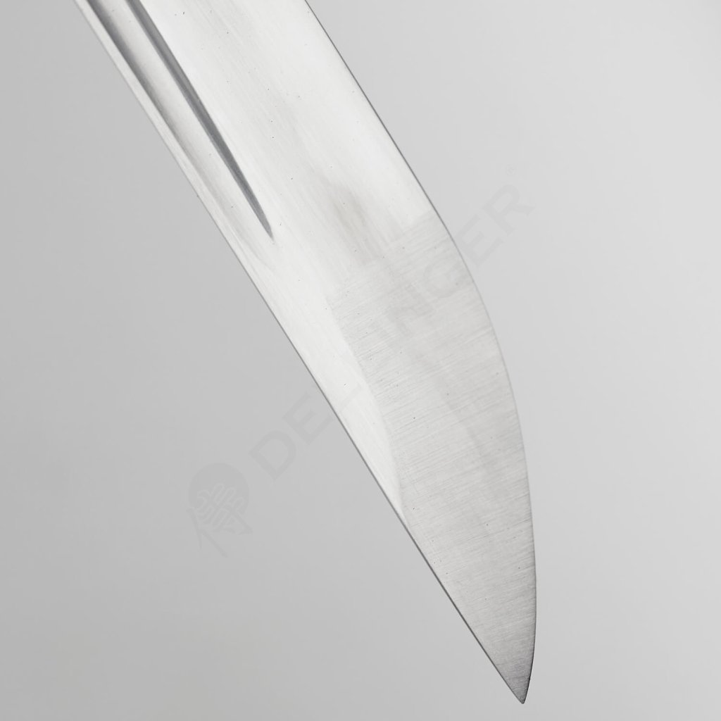 Výrazný hrot čepele O-Kissaki s dokonale definovaným Diamond-Shaped Yokote doplňuje reálný Choji Hamon, vytvořený tradičními metodami kovářských mistrů. Přítomnost žlábku Bo-Hi umožňuje při technicky správném pohybu slyšet zvukový efekt (tachi kaze - vítr meče), což je klíčové pro verifikaci správné techniky pohybu.