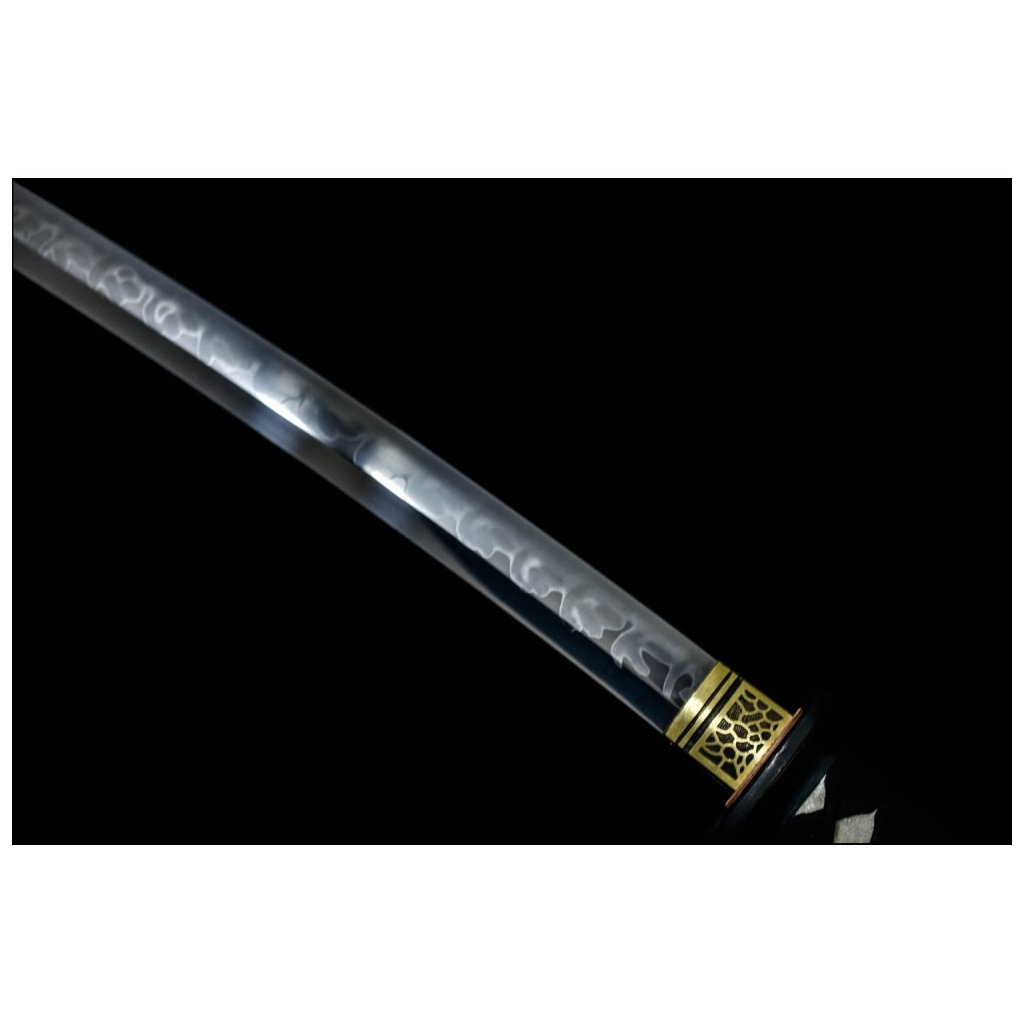 Reálný Choji hamon je tvořen dle dávných tradičních metod, které vychází z mnohaletých zkušeností kovářského mistra. Tento proces vytváří na čepeli překrásný hamon Hada a Martensite (zrna). Jedná se o špičkovou repliku samurajského meče, která je vhodná k sekovým zkouškám a lze ji rozložit. Tato čepel byla vyzkoušena a testována tak, aby odstranila vše co jí stojí v cestě ! Sori (zakřivení čepele) je speciálně navrženo tak, aby bylo dosaženo co možná nejjemnějších a nejčistších řezů. To vše v kombinaci s výběrem tradičního Koshirae zaručuje, že získáte to nejlepší z hlediska vzhledu i funkčnosti. Monokompositnítní uhlíková ocel T-10 má působivou tvrdost ve škále HRC- perfektní kombinace této tvrdosti je podtrženo zakřivením čepele Sori, které umožňuje snadné přeseknutí tatami, slaměné rohože, nebo bambusu pro tameshigiri. Full tang konstrukce této katany výrazně zvyšuje sílu meče. Hrot čepele je tvarovaný shinogi-zukuri a shubo zukuri kissaki (špičatý hrot), který je velmi dobře definován tím, že hamon prochází po celé délce přes Boshi.