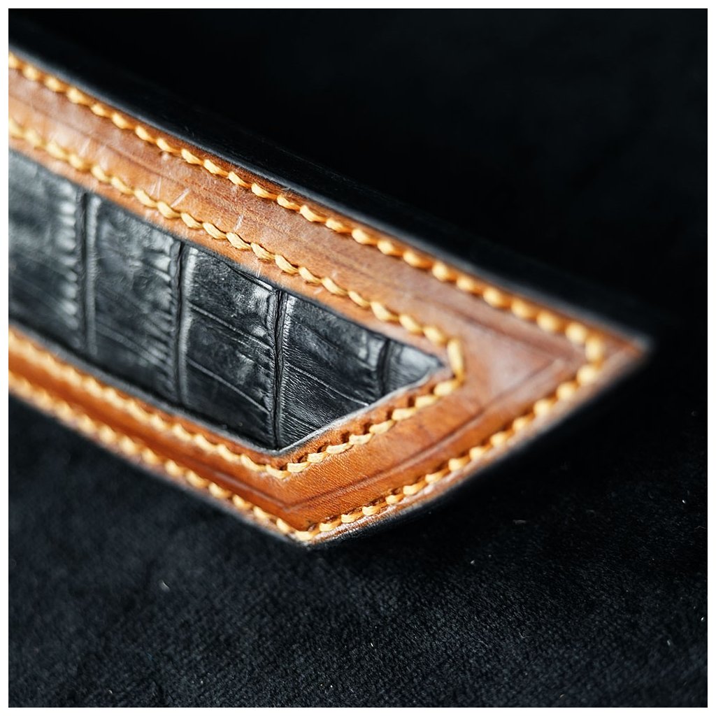 Model Tanto Dellinger FEZÁ Braun je zosobněním luxusu a historie. Jedná se o unikátní nůž s čepelí vykovanou z damaškové oceli nejvyšší kvality od amerického mistra Randyho (Feather Damascus). Tento vzor, připomínající jemná ptačí pírka, patří k vrcholům kovářského umění. Každý nůž je individuálně ručně broušen a dosahuje extrémní úrovně ostrosti. Střenka (tsuka) je vyrobena z drahocenné fosilie mamutího zubu, zatímco záštita (tsuba) a habaki jsou rovněž z damašku. Tato kombinace mamutí fosilie a mistrovského damašku tvoří vizuálně fascinující celek. Materiál starý více než 10 000 let byl objeven v sibiřském permafrostu, což z něj činí vzácné a okouzlující svědectví o legendárních tvorech z úsvitu lidstva.