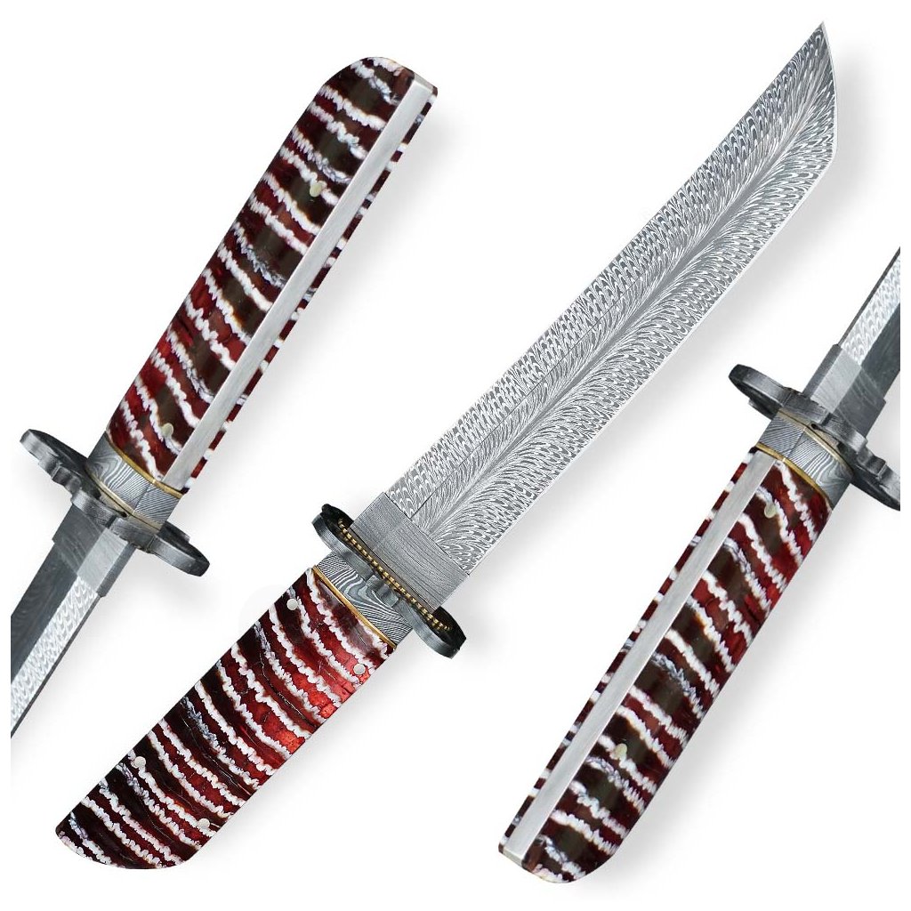 Unikátní nůž Tanto Dellinger FEZÁ Violet nr.16, mamutí fosilie, Feather Damascus