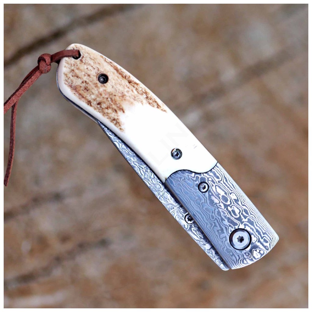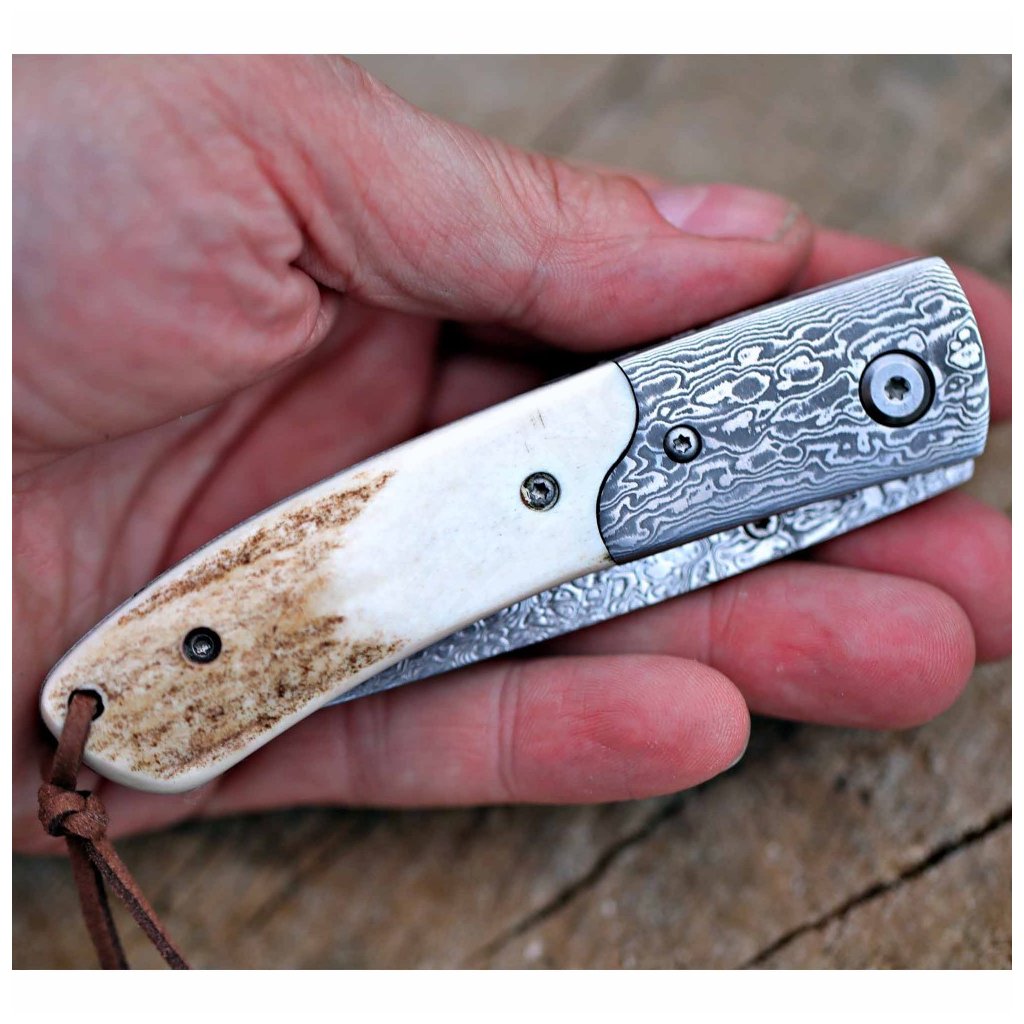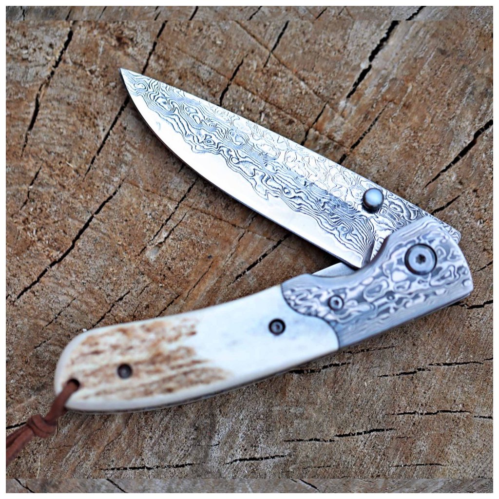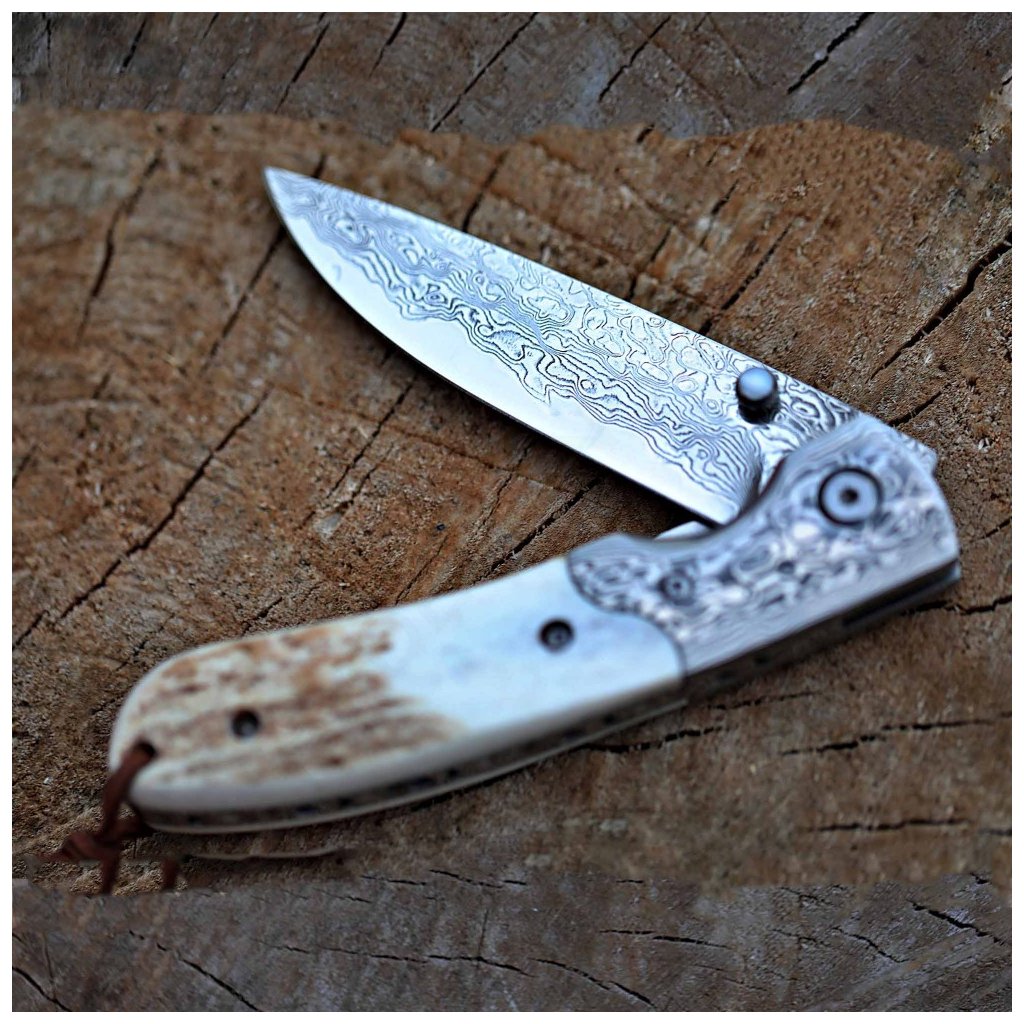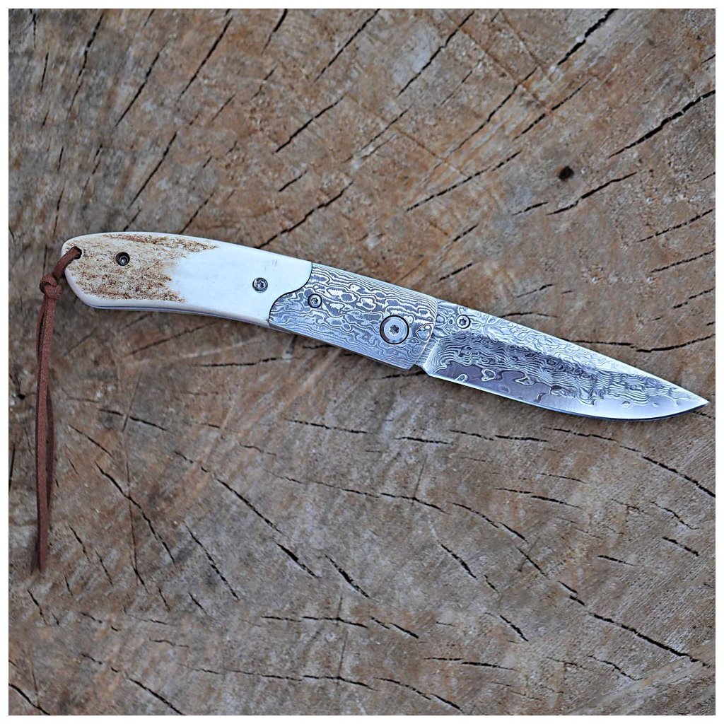 Zavírací damaškový nůž Dellinger Weidmann, VG-10 & rukojeť z paroží