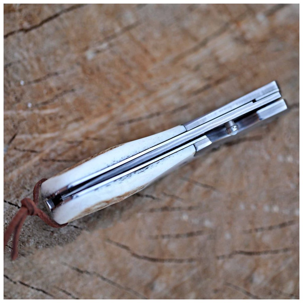 Design nože definuje rukojeť z poctivého paroží, doplněná o elegantní bolster z damaškové oceli. Tato kombinace materiálů dělá z každého kusu neopakovatelný originál. Nůž je ideálním společníkem pro myslivce, lovce i sběratele. Součástí dodávky je prémiové kožené pouzdro pro pohodlné nošení na opasku.