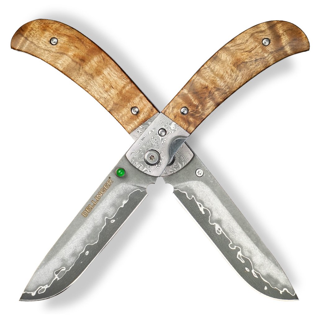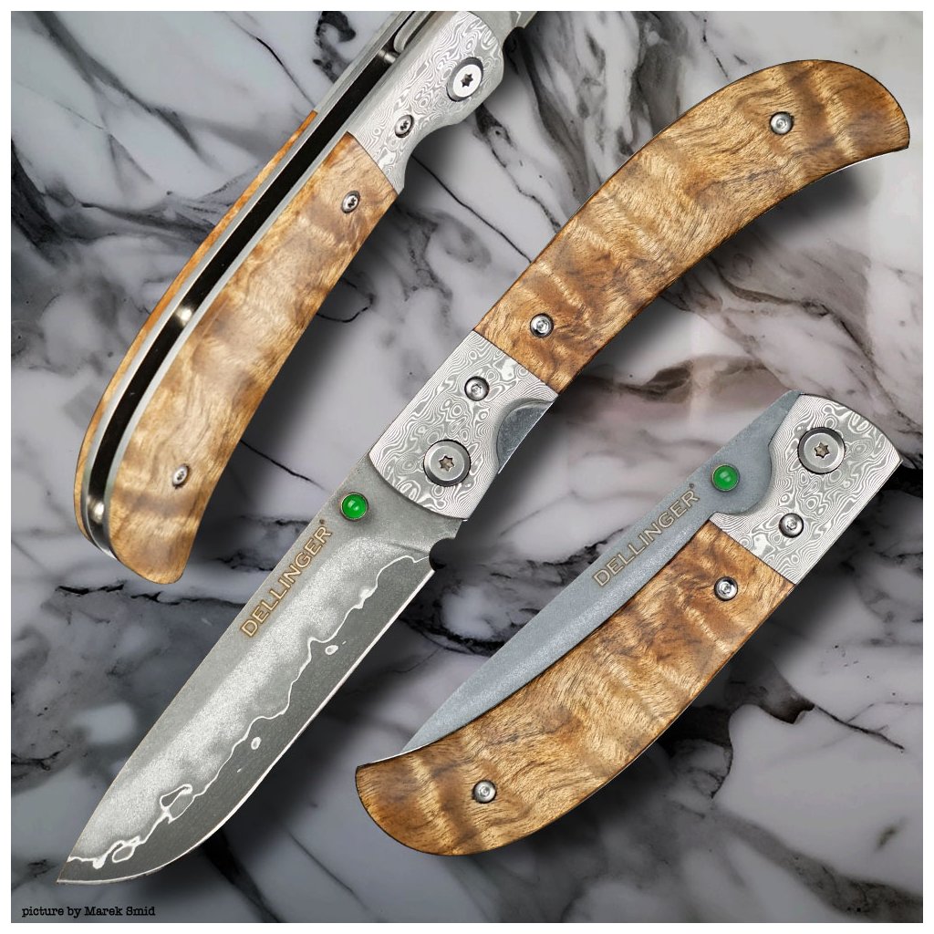 Zavírací EDC nůž Dellinger Scorpion Maple Burlwood, San Mai SKD11