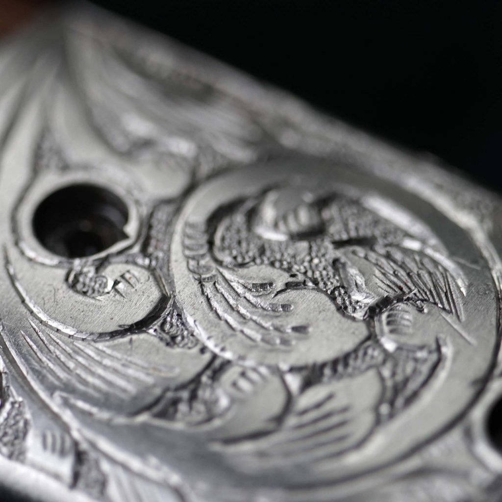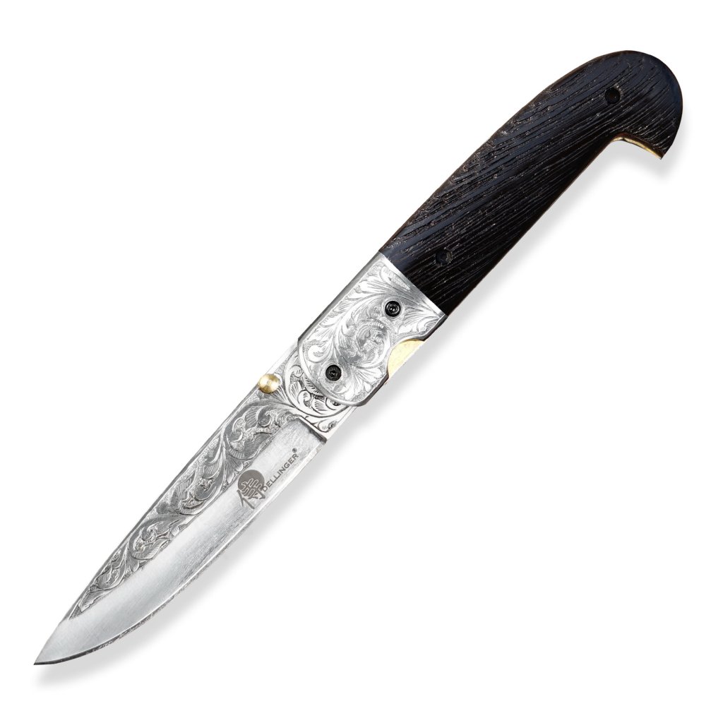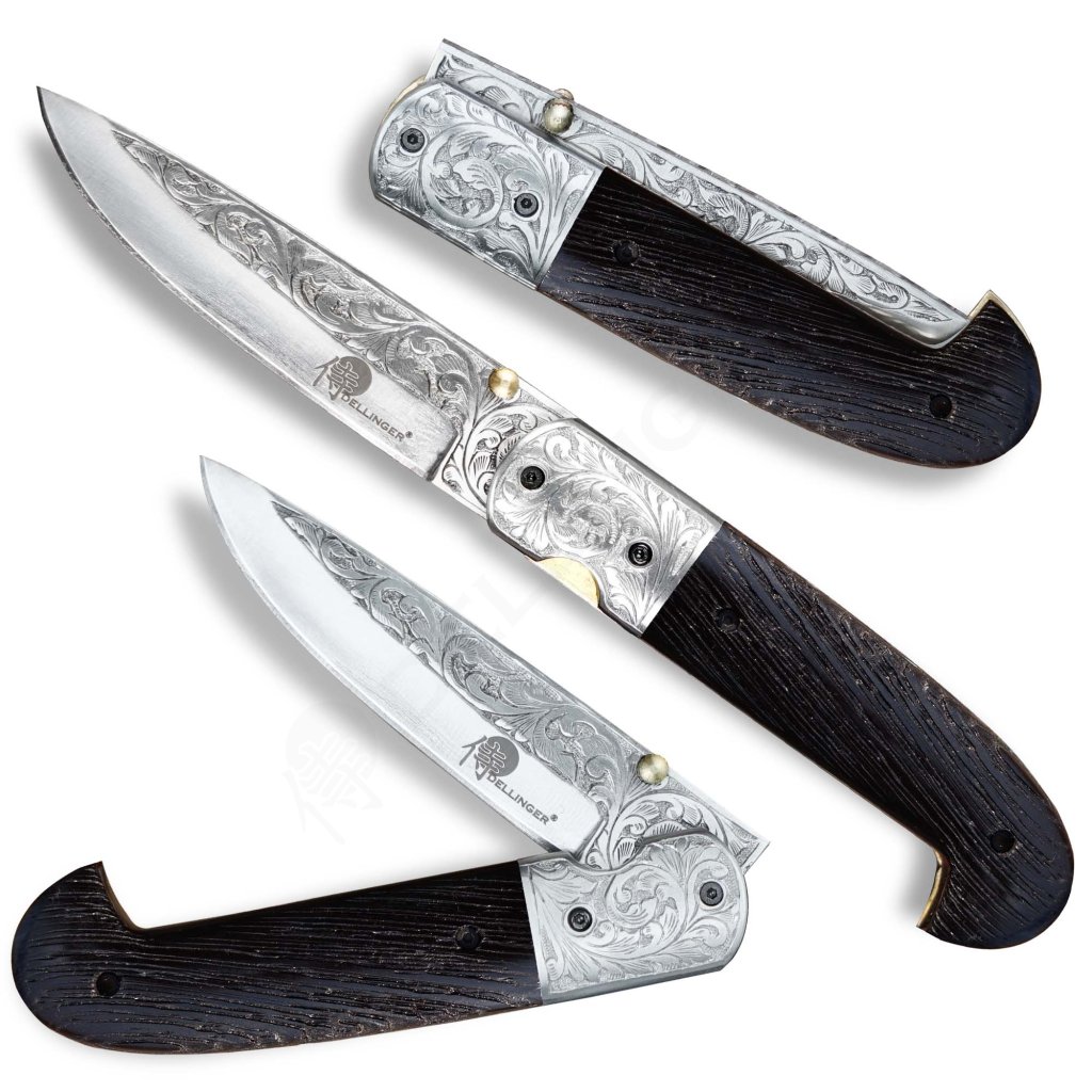 Zavírací nůž Dellinger Kizama D2 Wenge představuje exkluzivní, bohatě zdobenou variantu oblíbeného modelu Sentinell. Tento nůž zaujme na první pohled ručně rytou čepelí z nástrojové oceli D2 a stejně zdobeným bolsterem (záštitou). Čepel je vybavena oboustranným kolíčkem pro pohodlné otevírání jednou rukou, což z něj činí ideální nástroj pro každodenní nošení (EDC) i outdoorové aktivity.